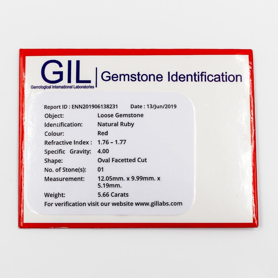 Stunnung 5.66 Ct Natural Certified Mined From The Earth Red Ruby Gemstone.Oval Cut Measuring 12.01 x 9.96 x 5.18 mm. Eye Clean. Ready To Mount. Treated To Enhance Clarity