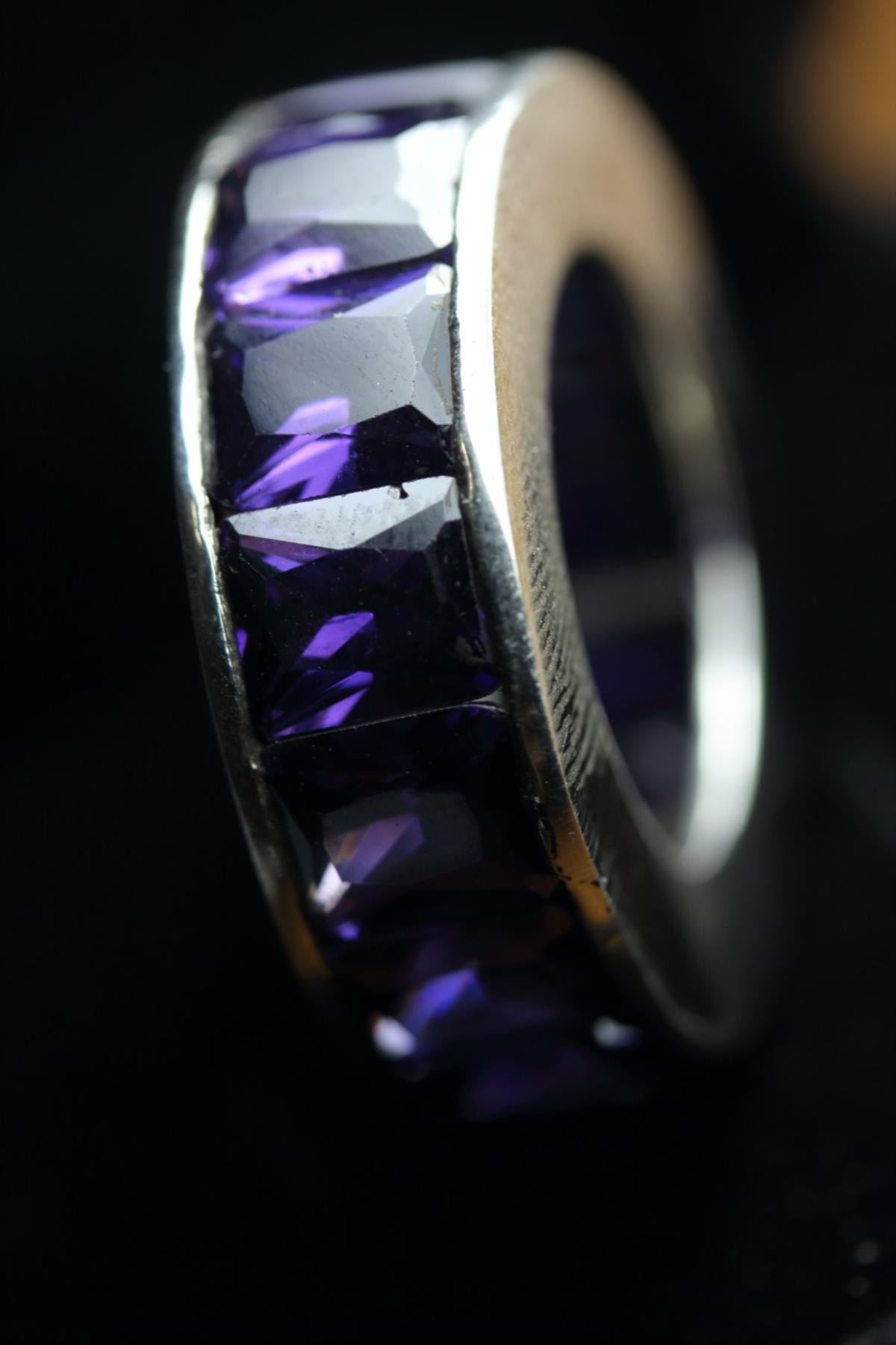 Stunning Amethyst Eternity Band 45.25 Carats.......Heavy...stylish eternity band.....925 Sterling Silver....Over 7 grams.....Eternity Band Size 6.75 7....(Note - Please advise if you have any ring size as we will custom make your ring size for you)