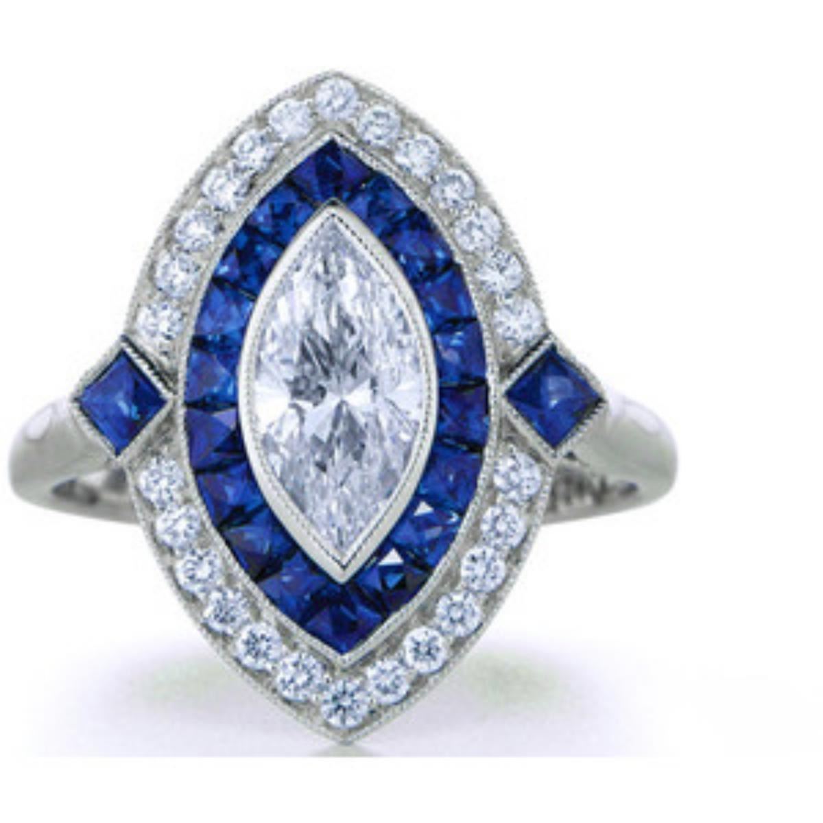 14k Whie Gold 3.5 grams....size 7 (size can be resized)....Center Diamond....0.65 carats ...SI2/I....Completely untreated free from any treatmnet;Natural Blue Sapphire 1.5 Carats....Origin - Ceylone; Side Diamond 0.26 carats....SI2/I....completely untreated; MSRP - 9500 Dollars