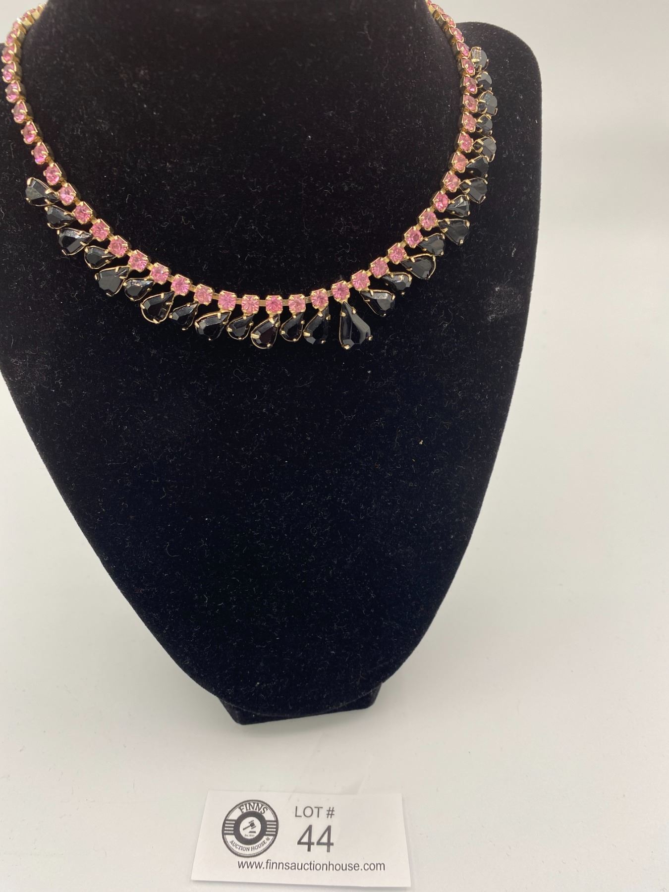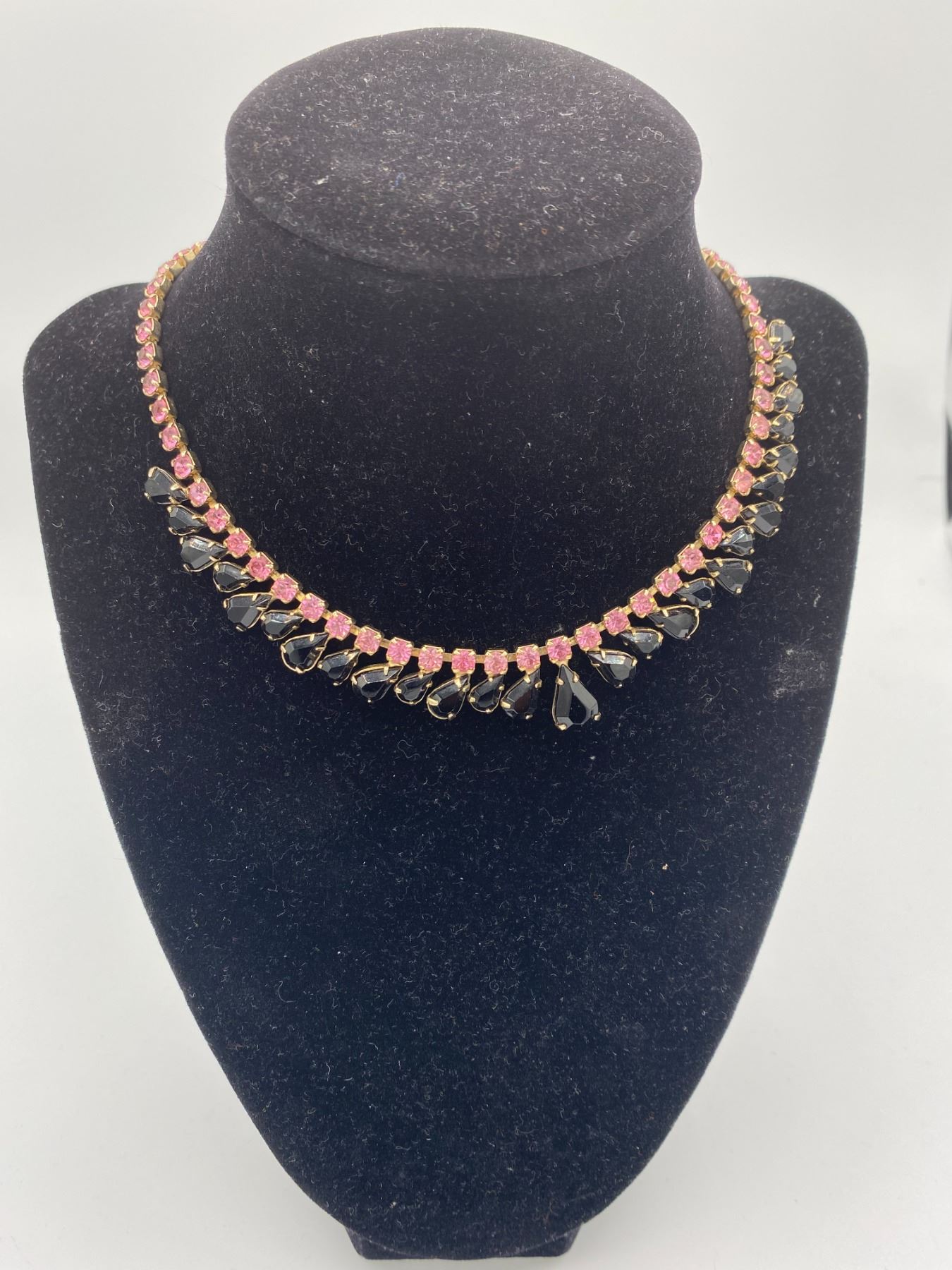 Stunning Black and Pink Vintage Rhinestone Necklace