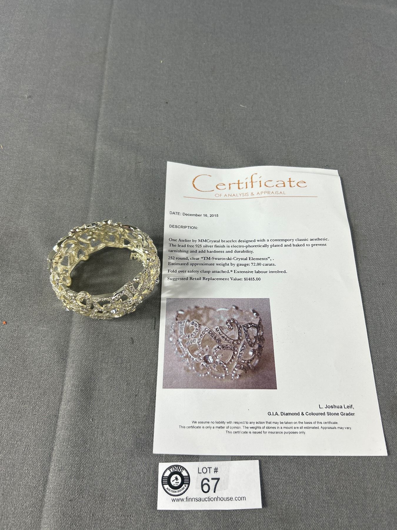 Stunning MMCrystal Bracelet with 925 Silver Plated Finish. 252 Round , Clear Swarovski-Crystal Elements. Safety Clasp. With Appraisal