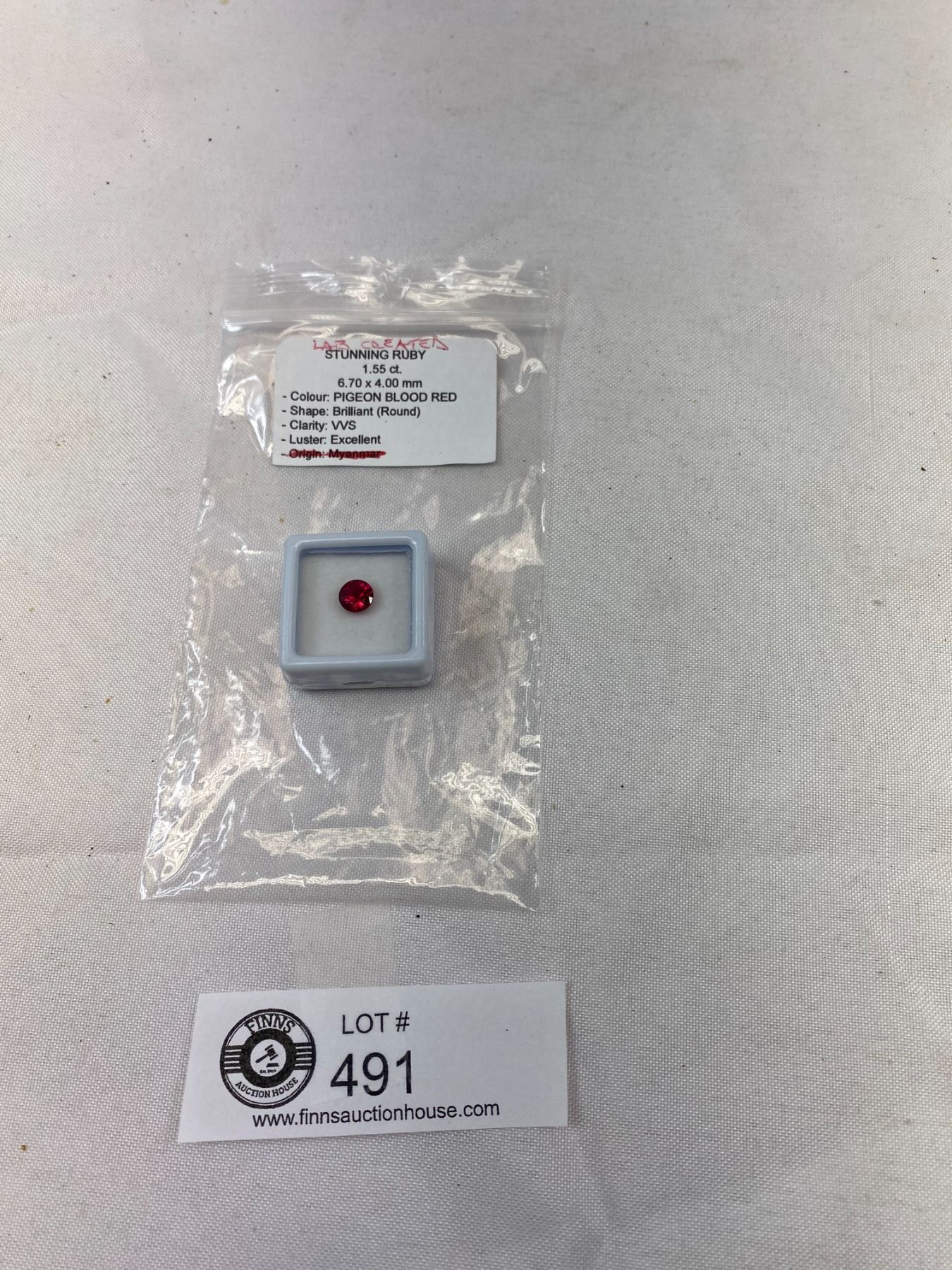 Stunning Ruby, 1.55ct, 6.7x4mm, Pigeon Blood Red Round Excellent Lab Created Ruby