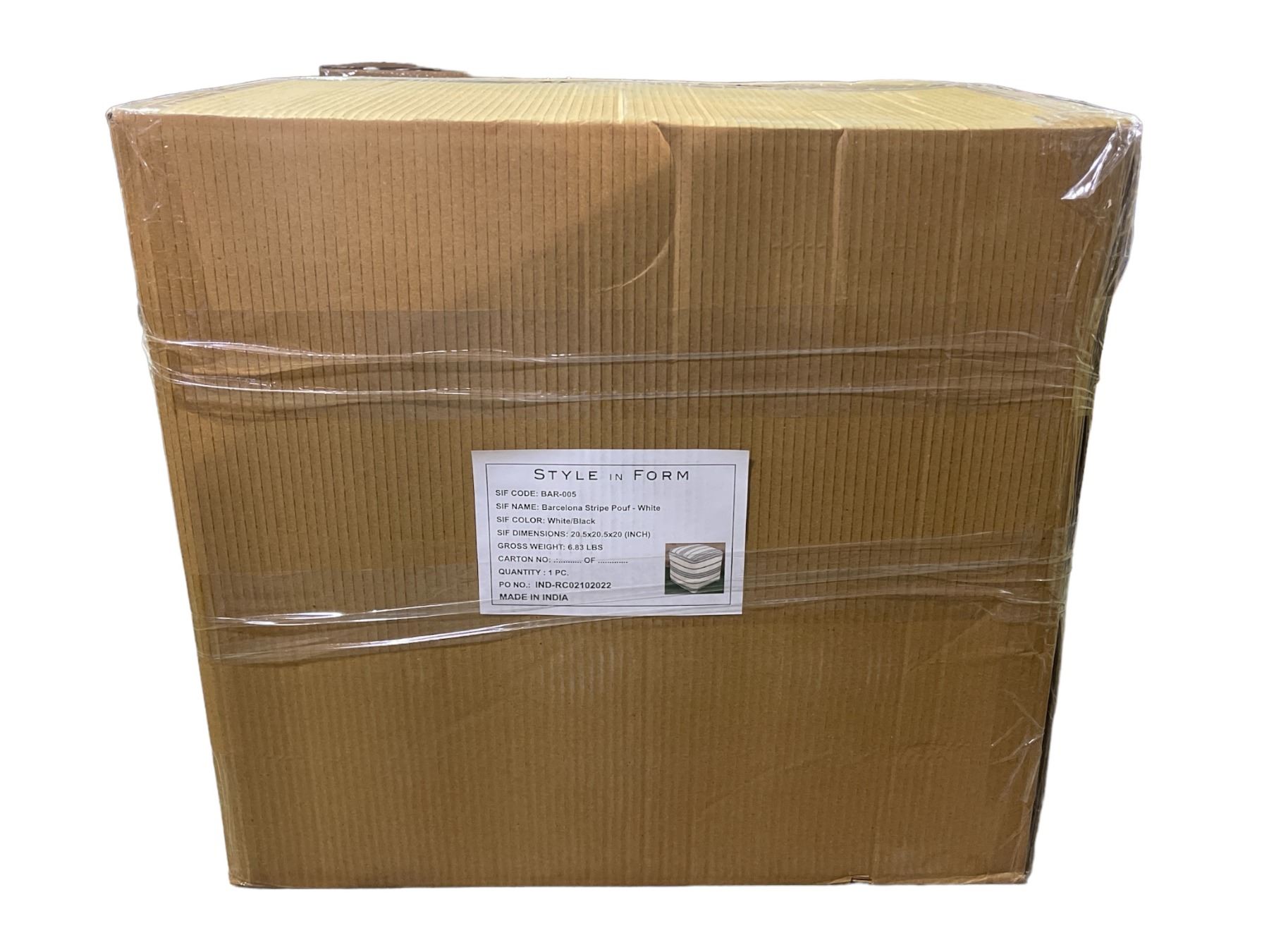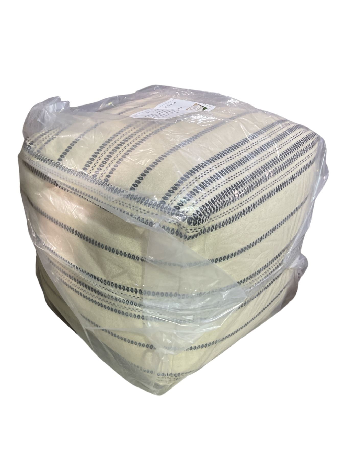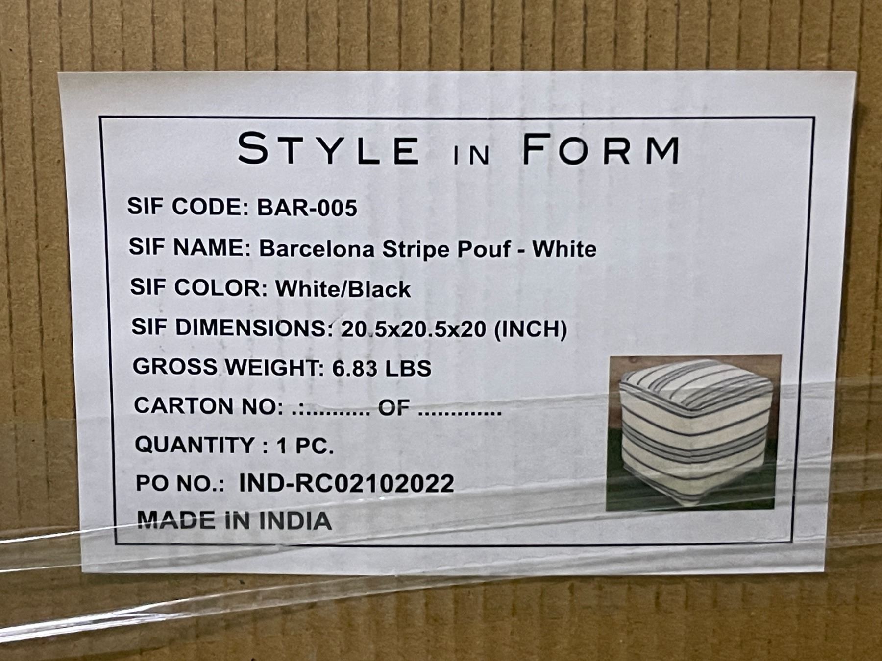 Style In Form "Barcelona Stripe Pouf" - White w/ Black Stripe - 20.5x20.5x20"