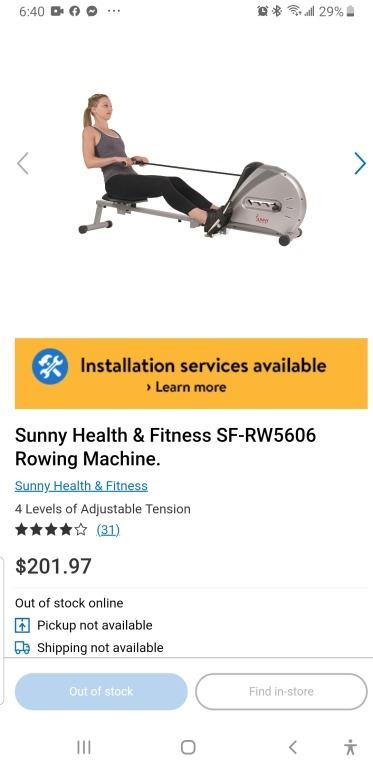 Sunny Health & Fitness SF-RW5606 Rowing Machine as new retail $200
