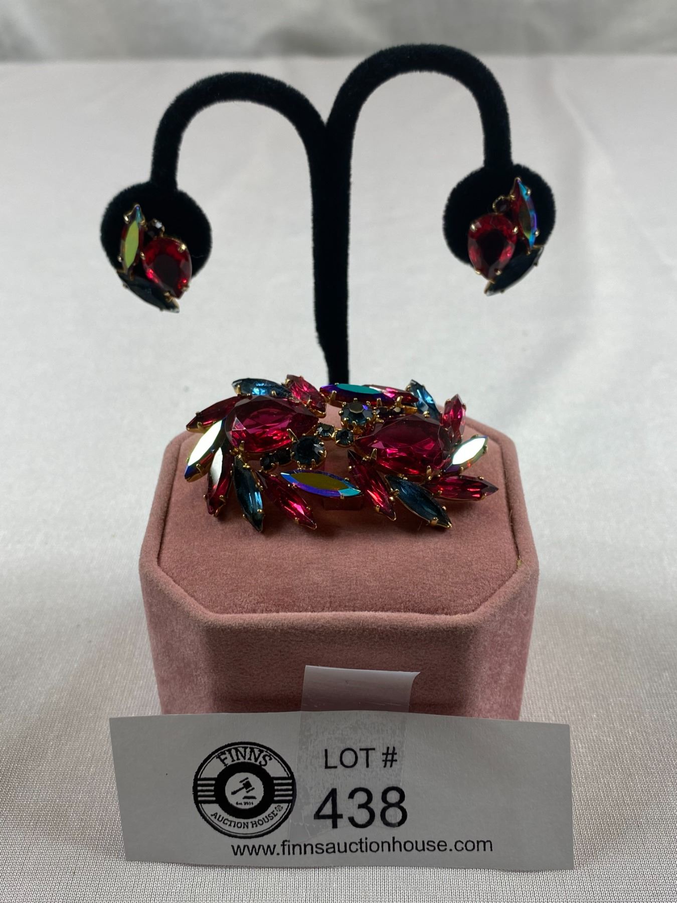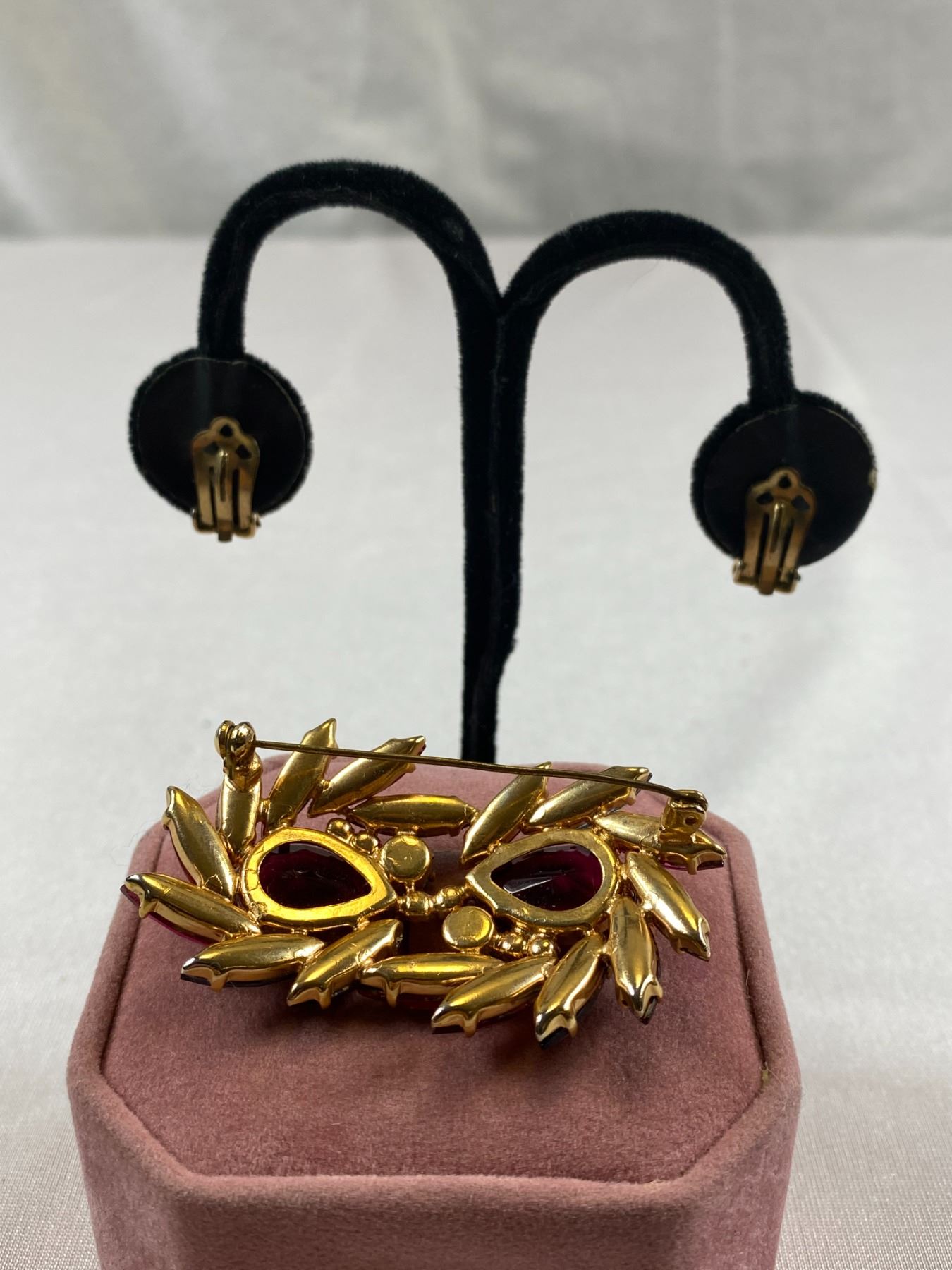Superb Quality Ruby Red Rhinestone Brooch and Earrings 1950's