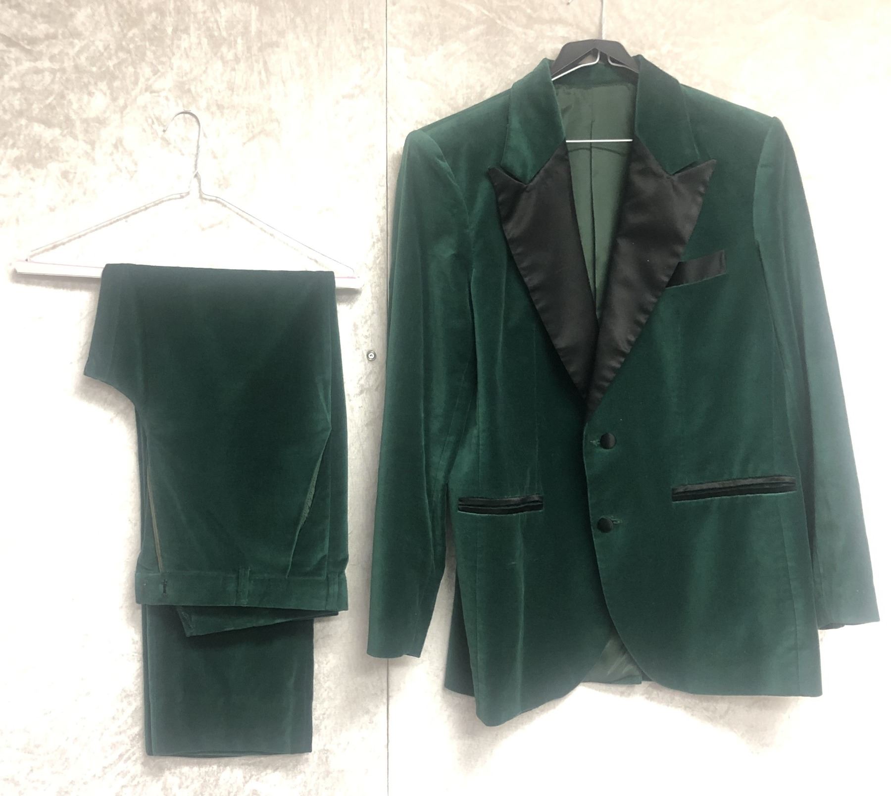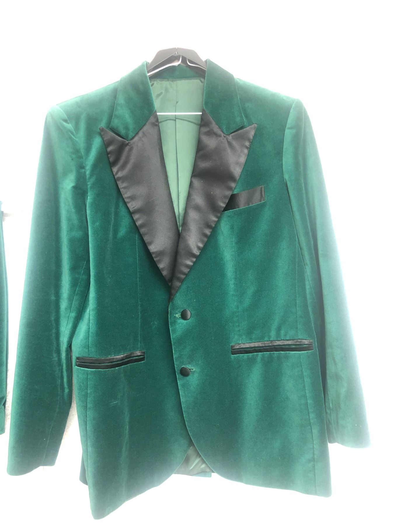"Superhero Show - 1980s green velvet Tuxedo w/pants