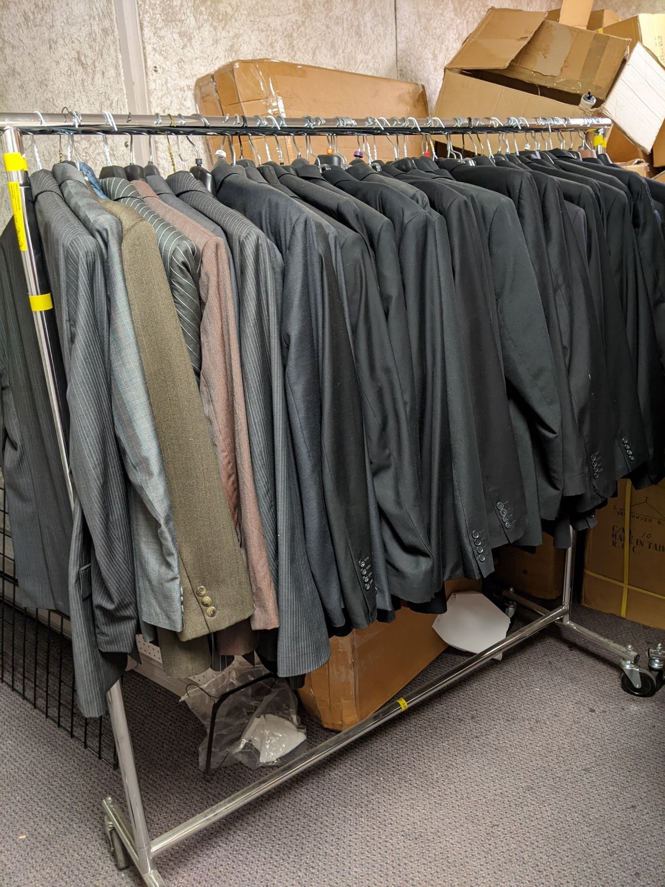 "Superhero Show" - Rack of assorted suit jackets & pants - approx 50pcs *rack not included*