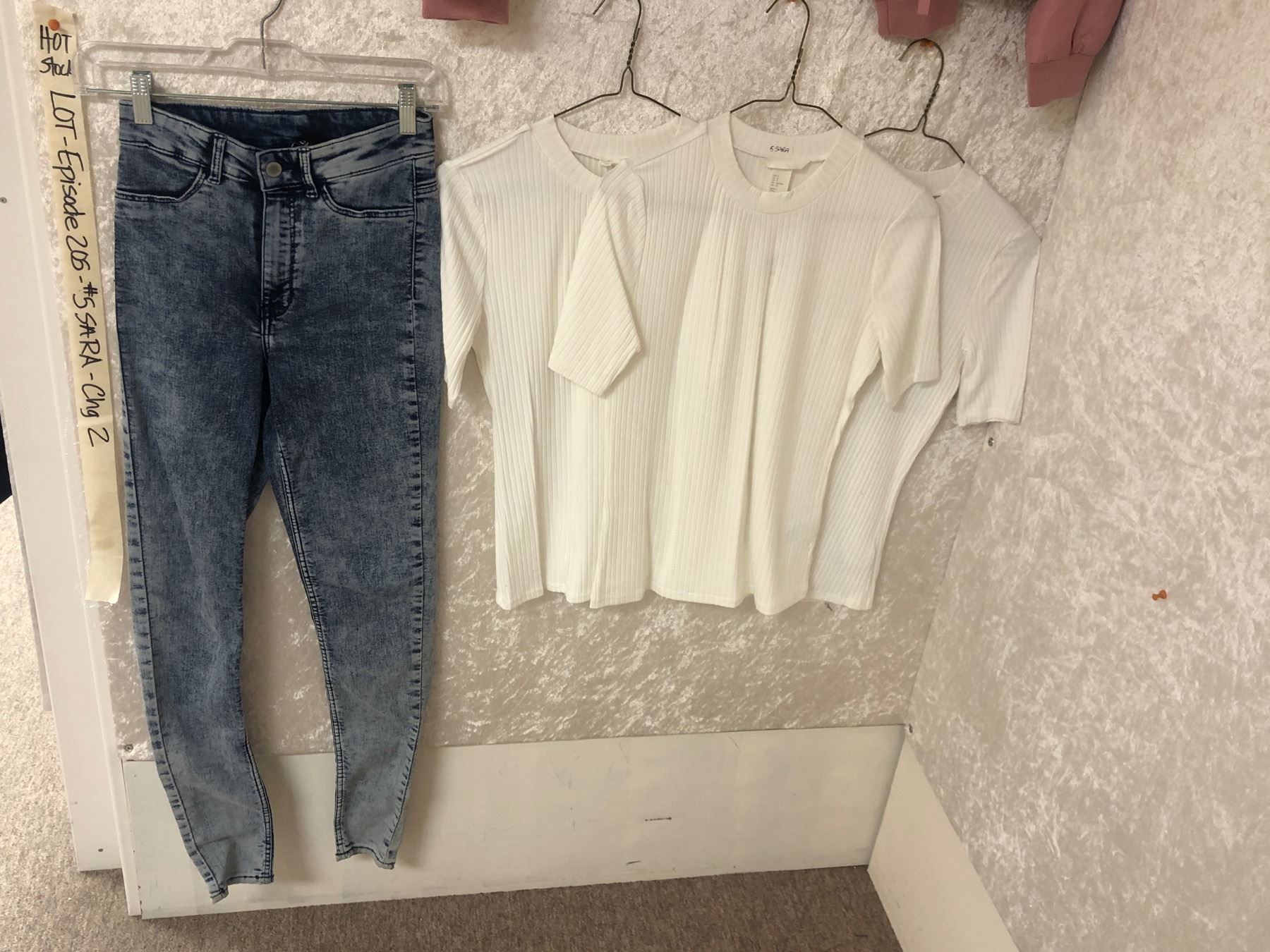 "Superhero Show" S2 Ep5 - complete Hero screen worn outfit - includes 3 Zara pink jackets (Sz small) / 3 white shirts & jeans