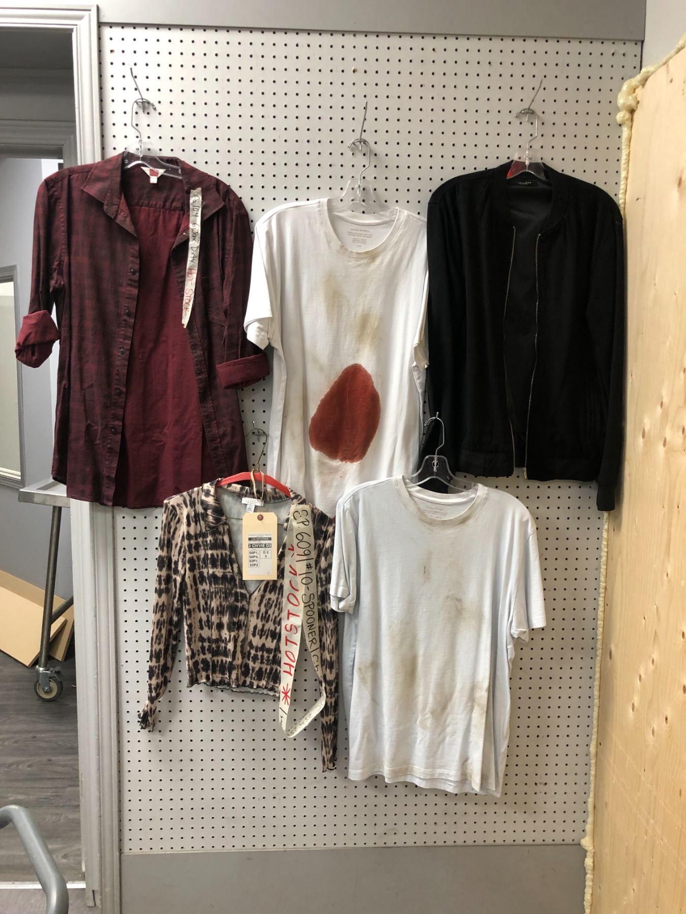 "Superhero Show" Season 1 ep 4 #6 Hero bloody outfit - includes bomber jacket/marron shirt/2 t-shirt/ 1 full sleeve shirt