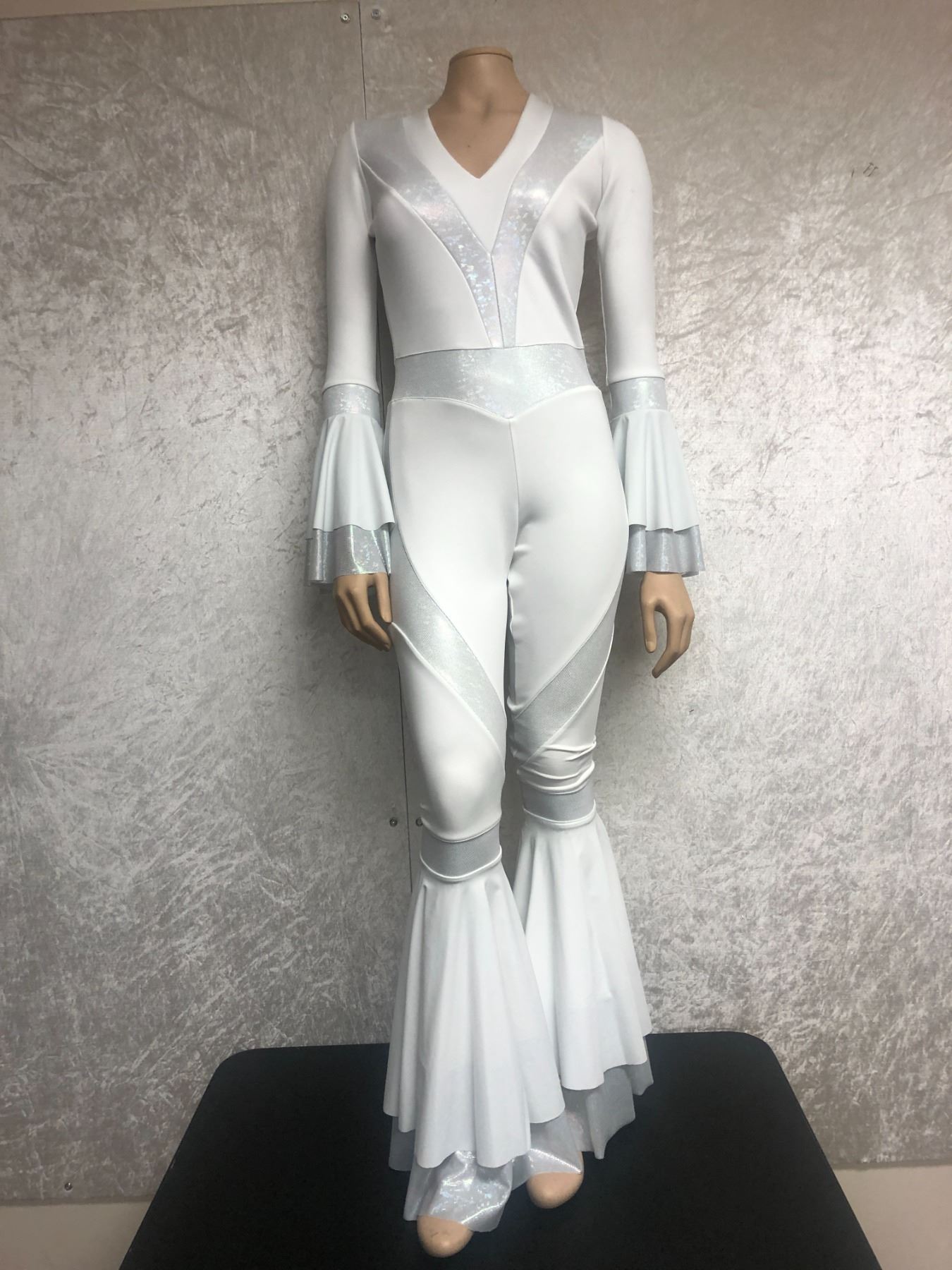 "Superhero Show - Season 3 Ep. 11" - #1 Hero - White & Silver 1970's jumpsuit w/flared arm cuffs & hems - *HOTSTOCK*