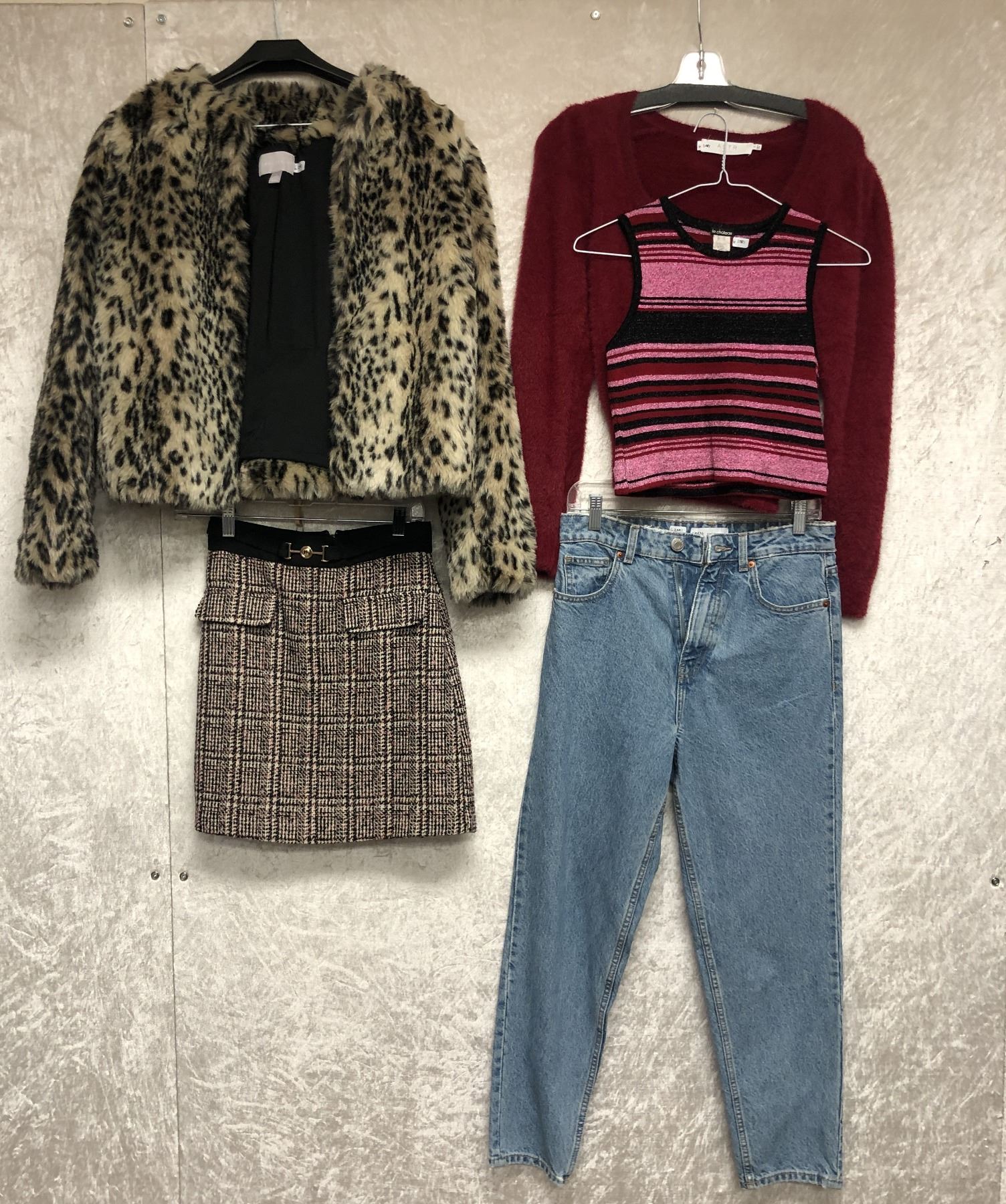 "Superhero Show - Season 5 Ep. 13"- #6 Hero - Complete 'UB Montage' outfit - includes Le Chateau pink striped knit sleeveless top/Topshop pink twill skirt/Astr long sleeve knit top/Zara jeans & Chelsea 28 fur leopard print coat - *HOTSTOCK*