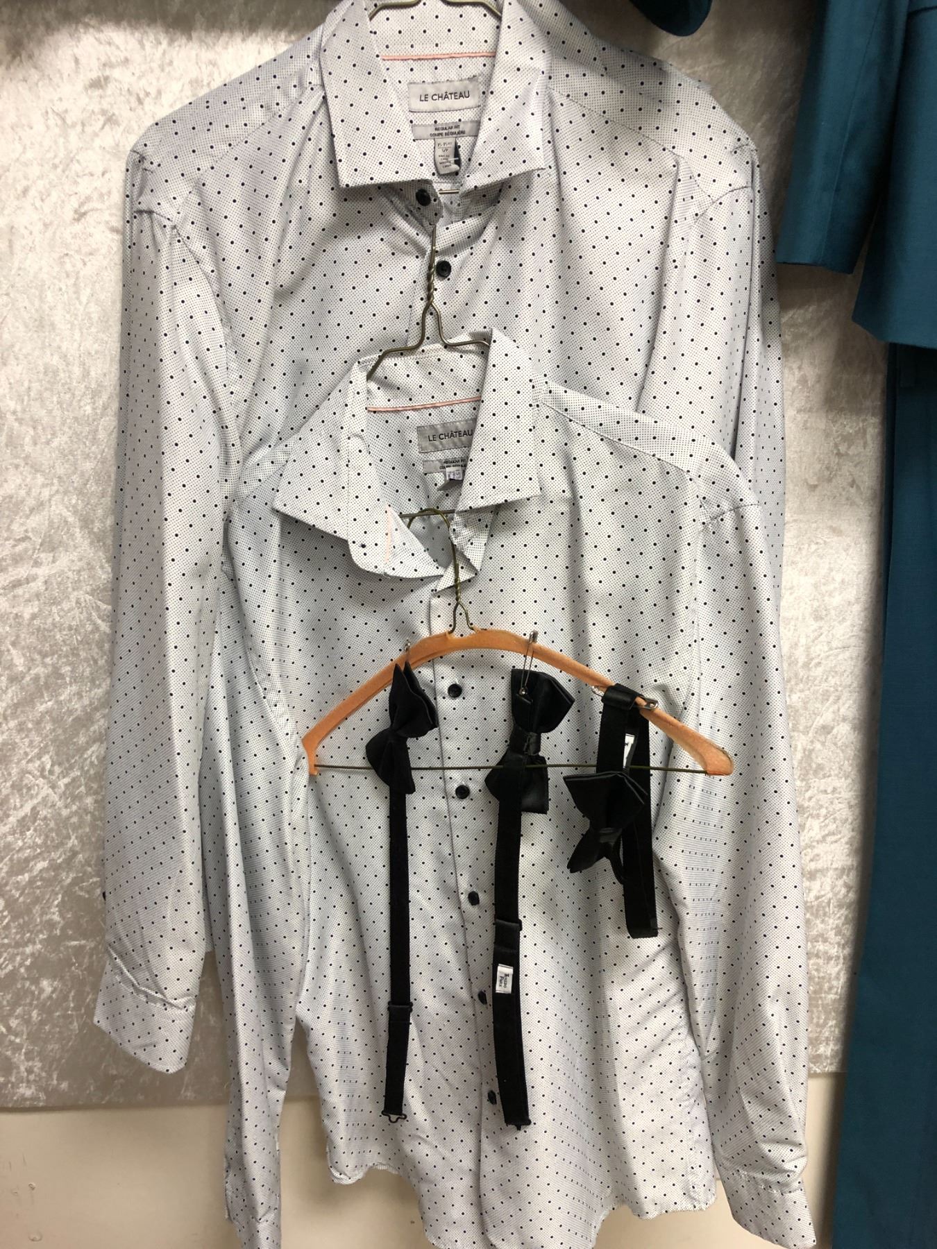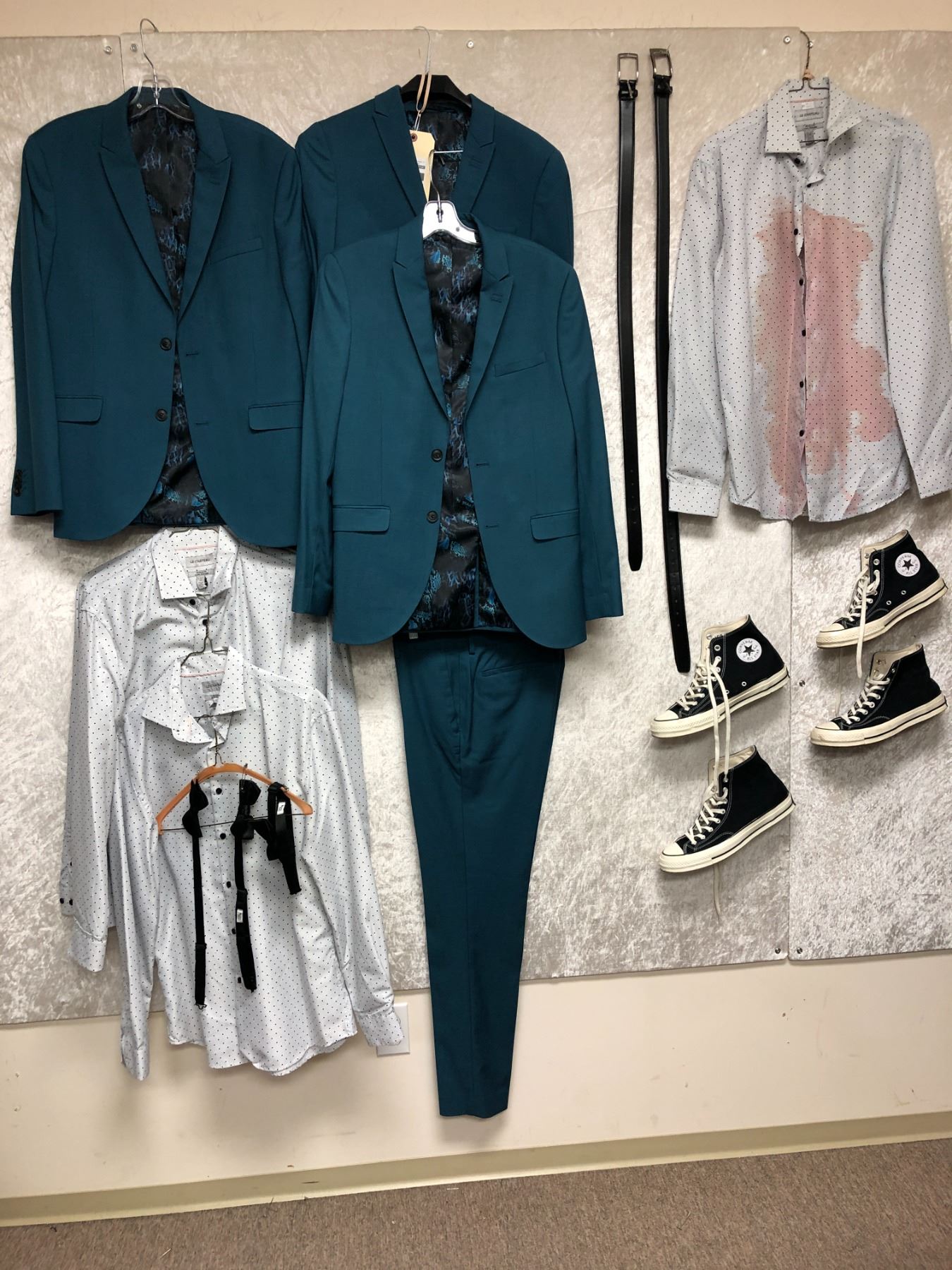 "Superhero Show - Season 5 Ep. 3"- #52 Hero & #152 Hero Stunt - '1989' Villain outfit - includes 3 Suit jackets/1 suit pants/5 dress shirts/3 bow ties/2 belts & 2 converse shoes - *HOT STOCK*