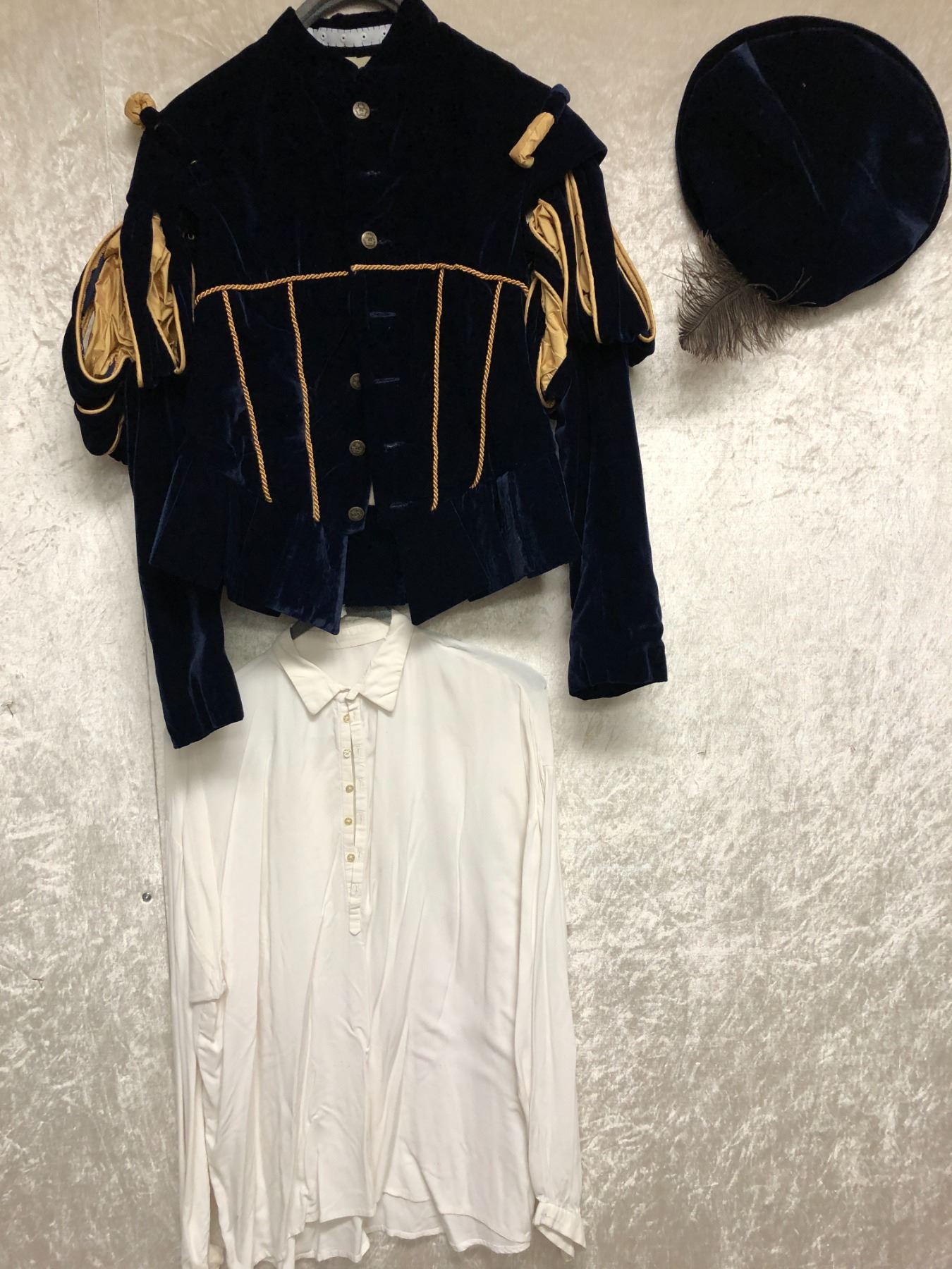 "Superhero Show - Season 5 Ep. 7" - #3 Hero - Constable outfit - includes Velvet Doublet (MTO/Navy & Gold/ White Shirt & Hat w/feather (MTO/Navy) - Played in Multiple scenes - *HOT STOCK*