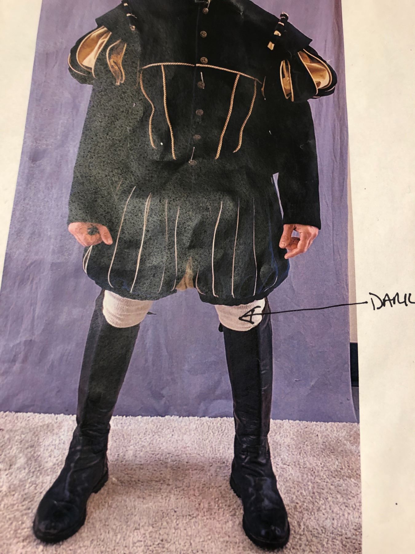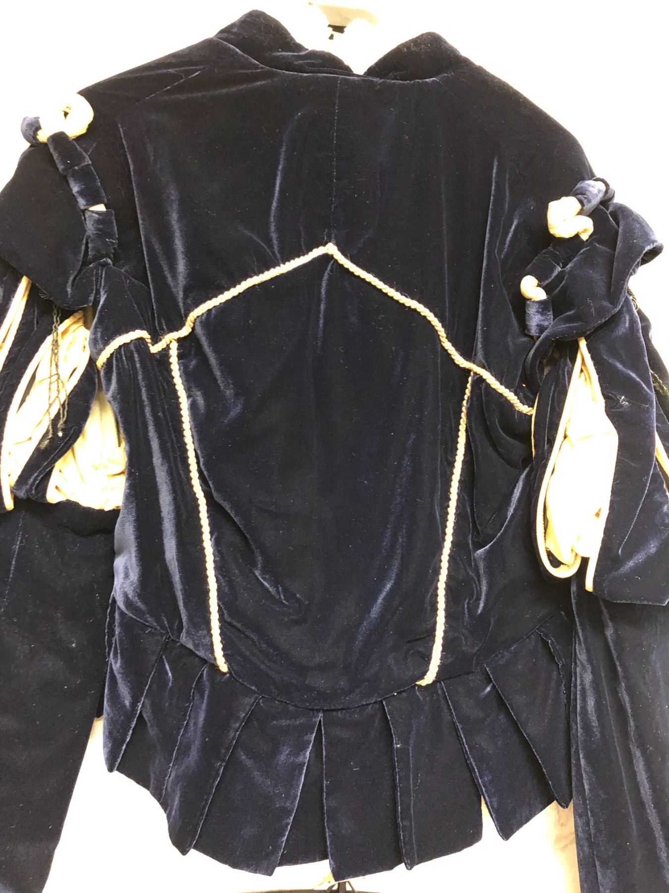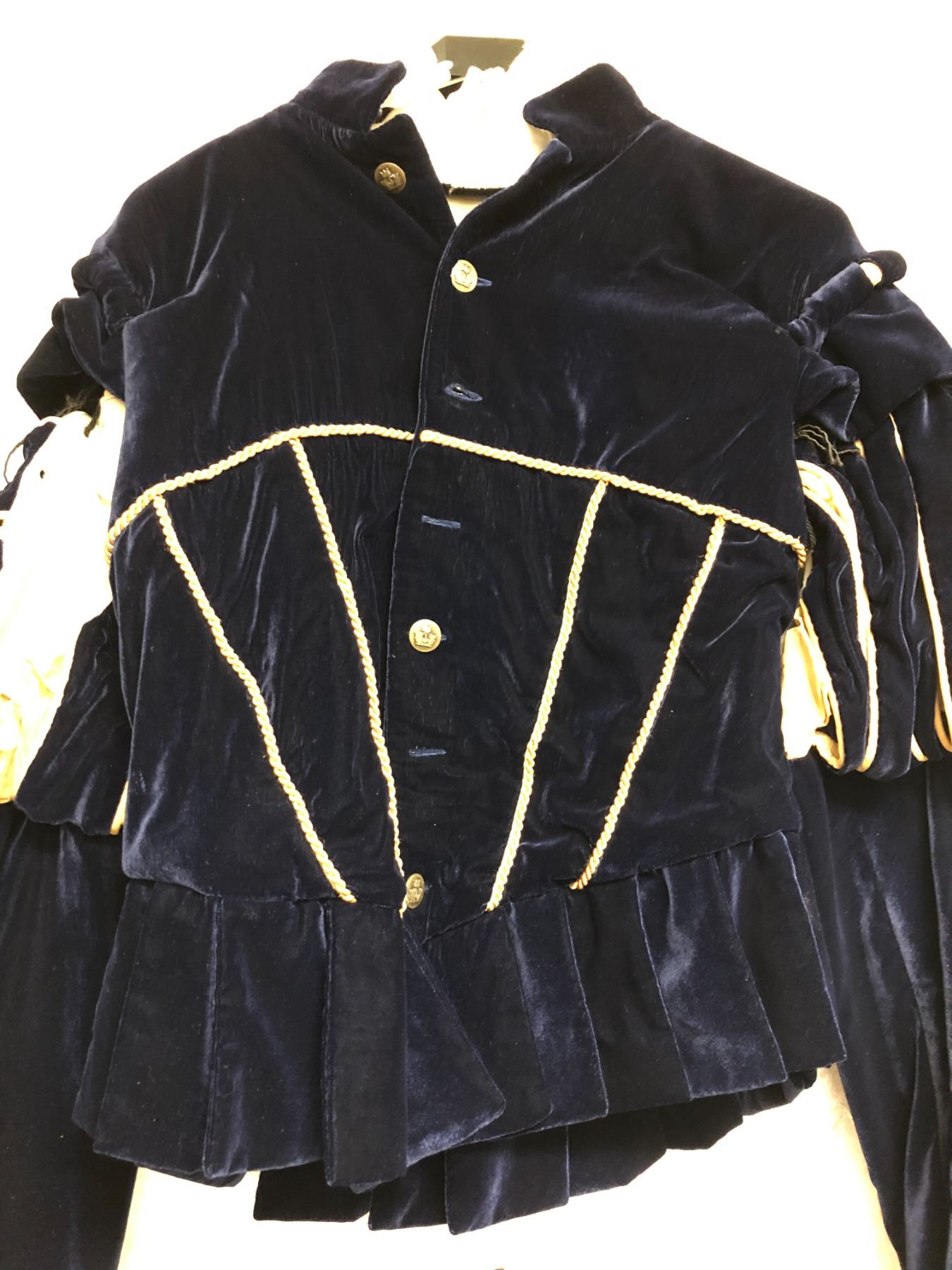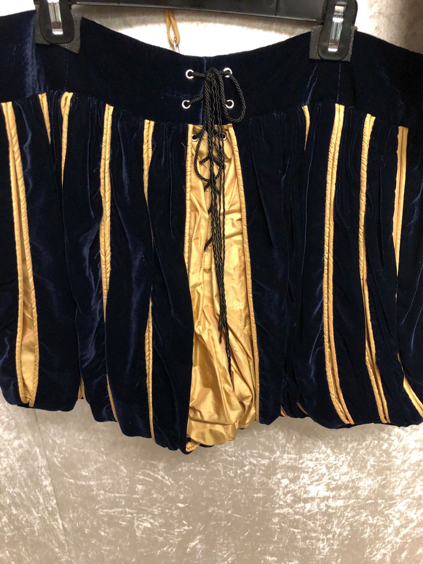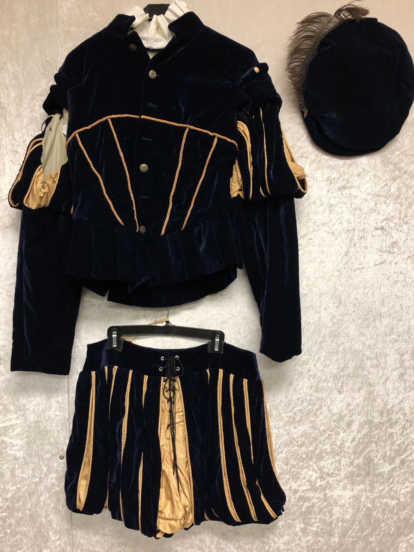 "Superhero Show - Season 5 Ep. 7" - #4 Hero - Constable outfit - includes Velvet Doublet (MTO/Navy & Gold/ Pumpkin pants & Hat w/feather (MTO/Navy) - Played in Multiple scenes - *HOT STOCK*