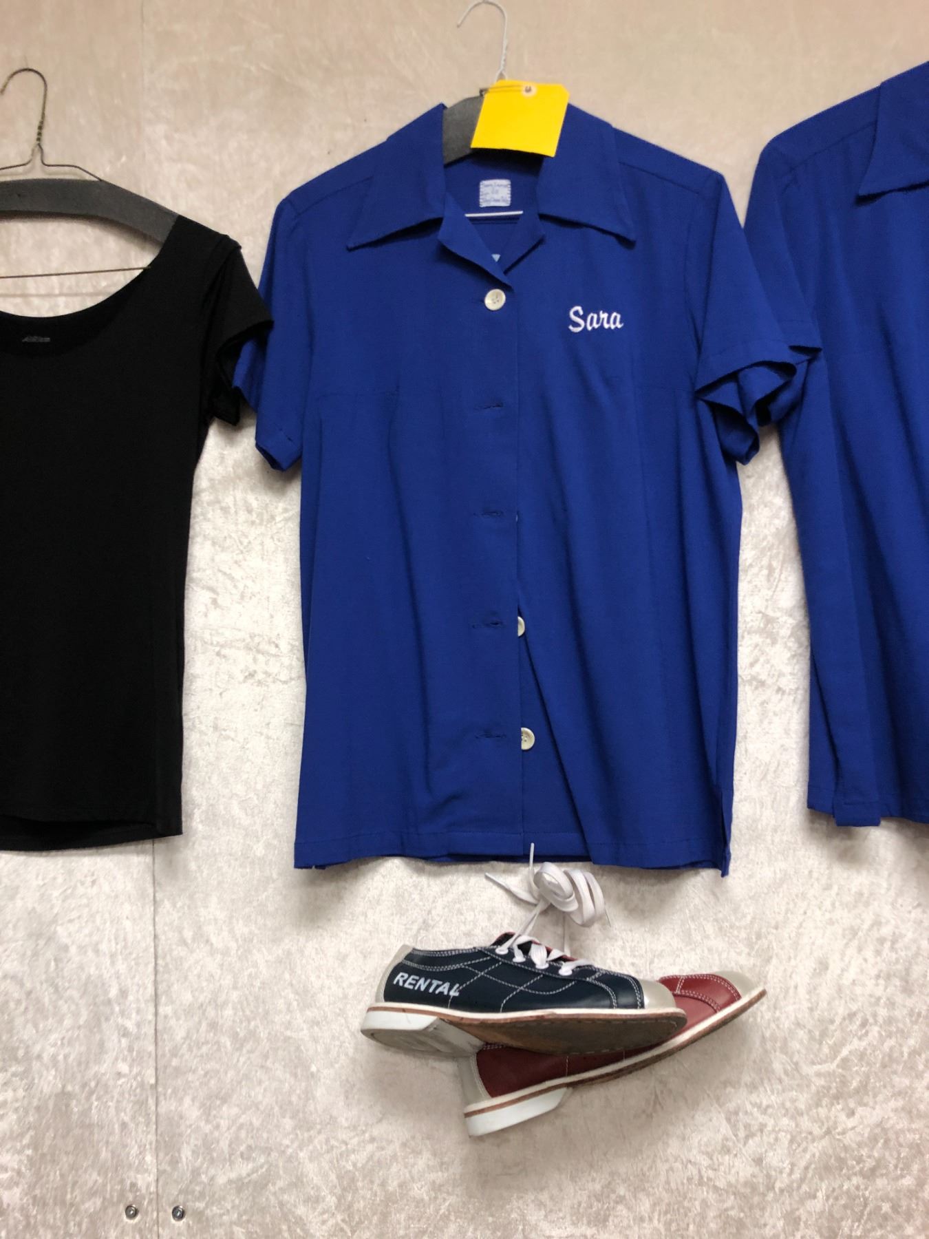 "Superhero Show" - Season 6 Ep. 12- #1 Hero - Vintage bowling outfit - includes 2 MTO Cobalt blue bowling shirts/round neck plain black shirt & bowling shoes - *HOTSTOCK*
