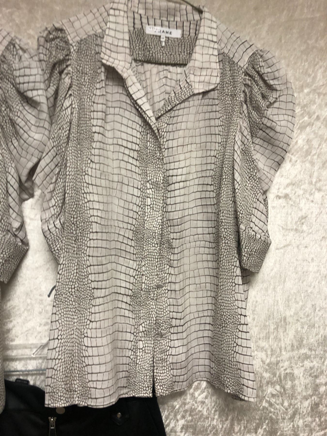"Superhero Show - Season 6 Ep. 12" - #4 Hero - Group of 2 Frame Cream White Blouse (size: S) & Black leather mini skirt (7 For All Mankind - Size: S) - *HOTSTOCK*