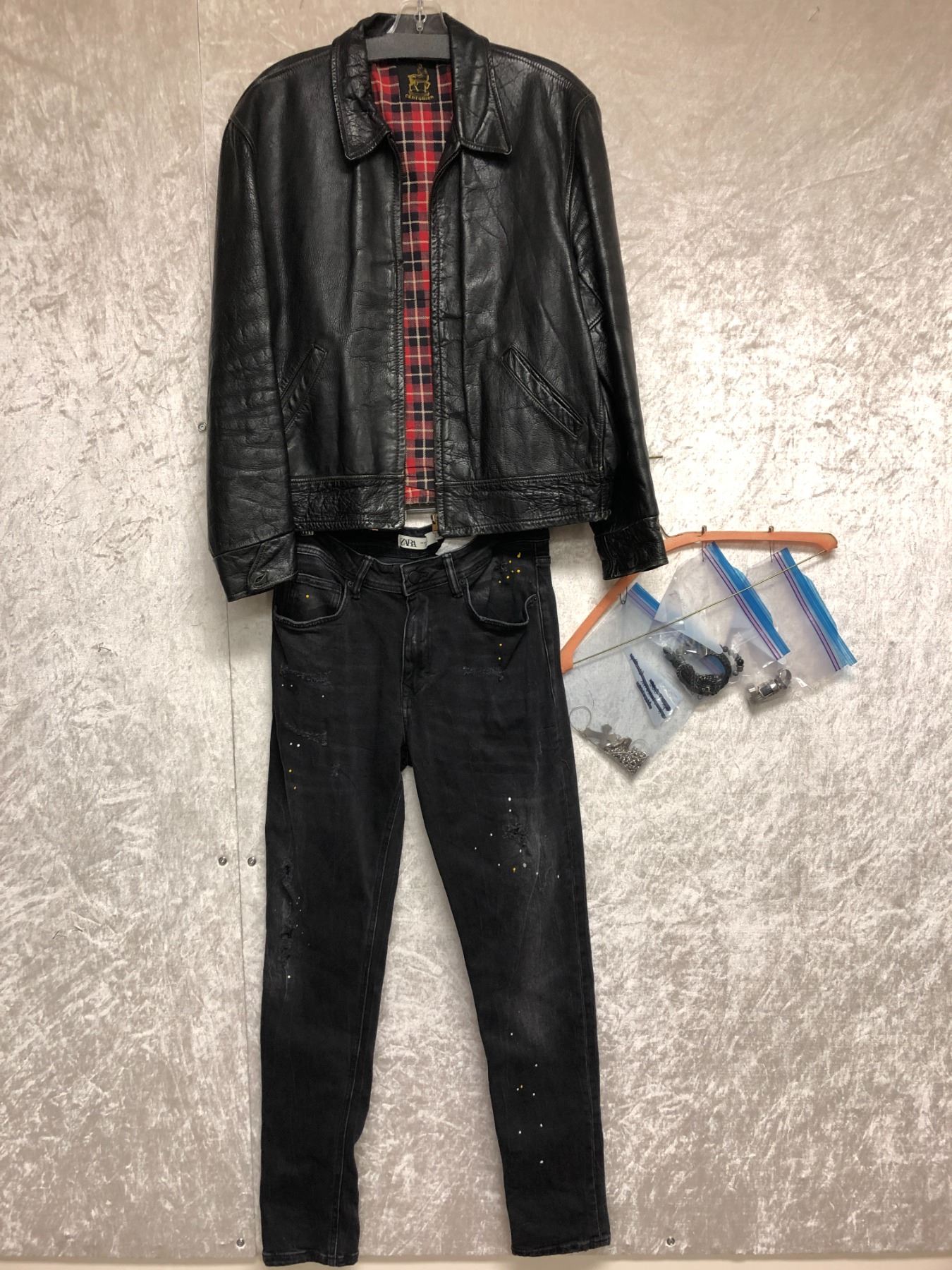 "Superhero Show - Season 6 Ep. 5" - #6 Hero - Complete Rockstar outfit - includes Centurion black leather jacket/Zara pants & accessories (5 rings/cross chains & hand bands) - *HOT STOCK*