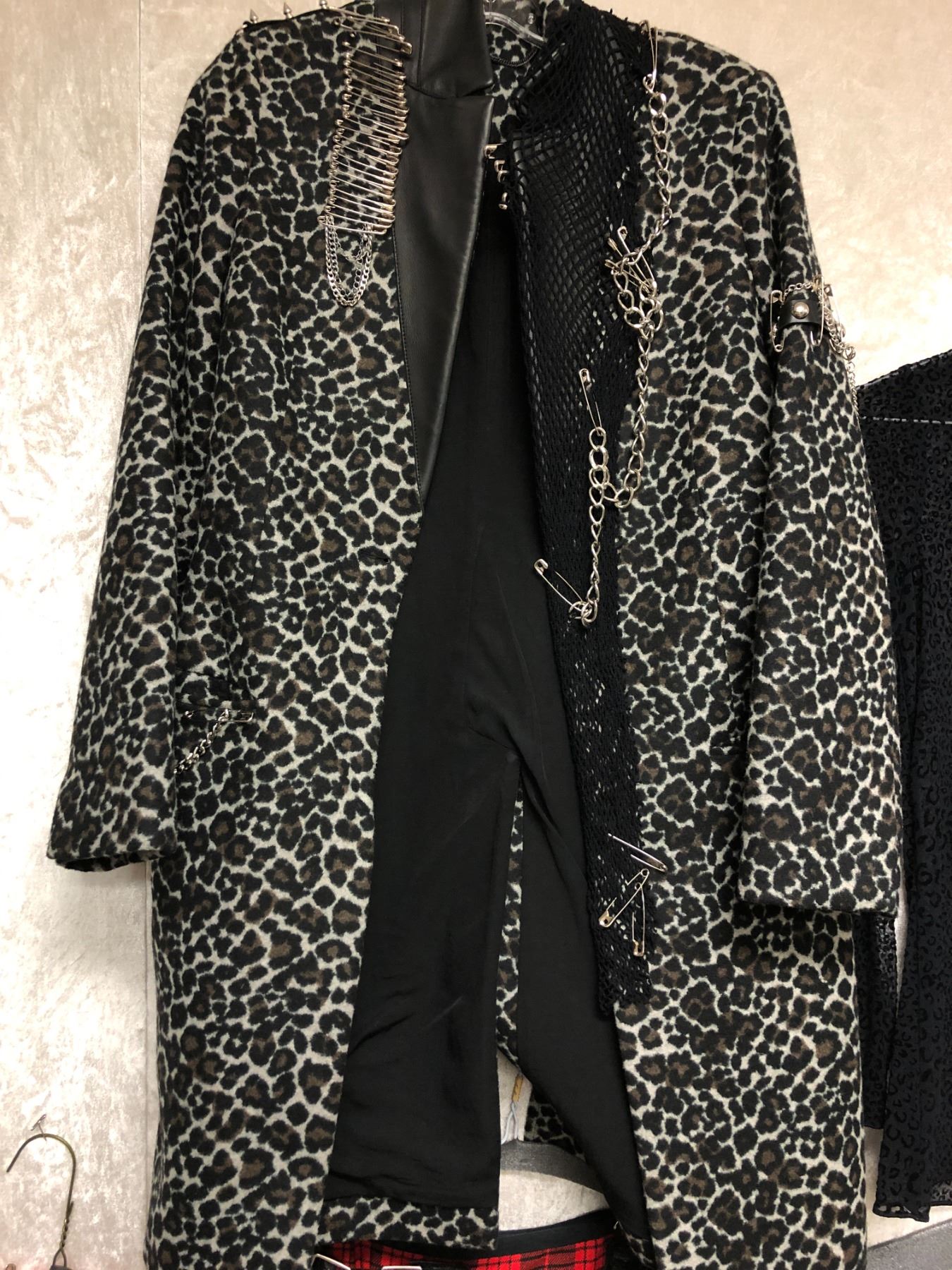 "Superhero Show - Season 6 Ep. 7" - #101 Hero - Complete Punk outfit - includes All Saints Leopard wool coat w/chain, safety pins & mesh details/Sunday's Best black bodysuit/MTO red & black pleated skirt/ long sleeve leopard print shirt etc. *HOT STOCK*