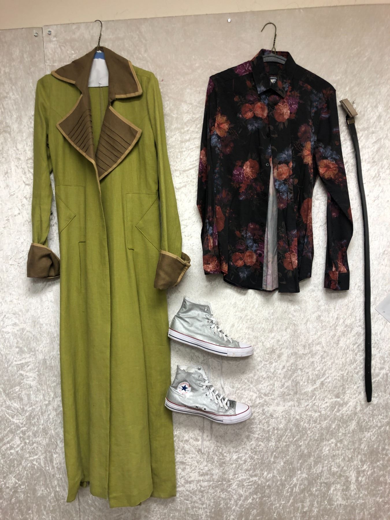 "Superhero Show - Season 7 Ep. 10" - 4 pc set of Time Traveler outfit - includes Green trench coat/floral shirt/belt & converse shoes - *HOTSTOCK*