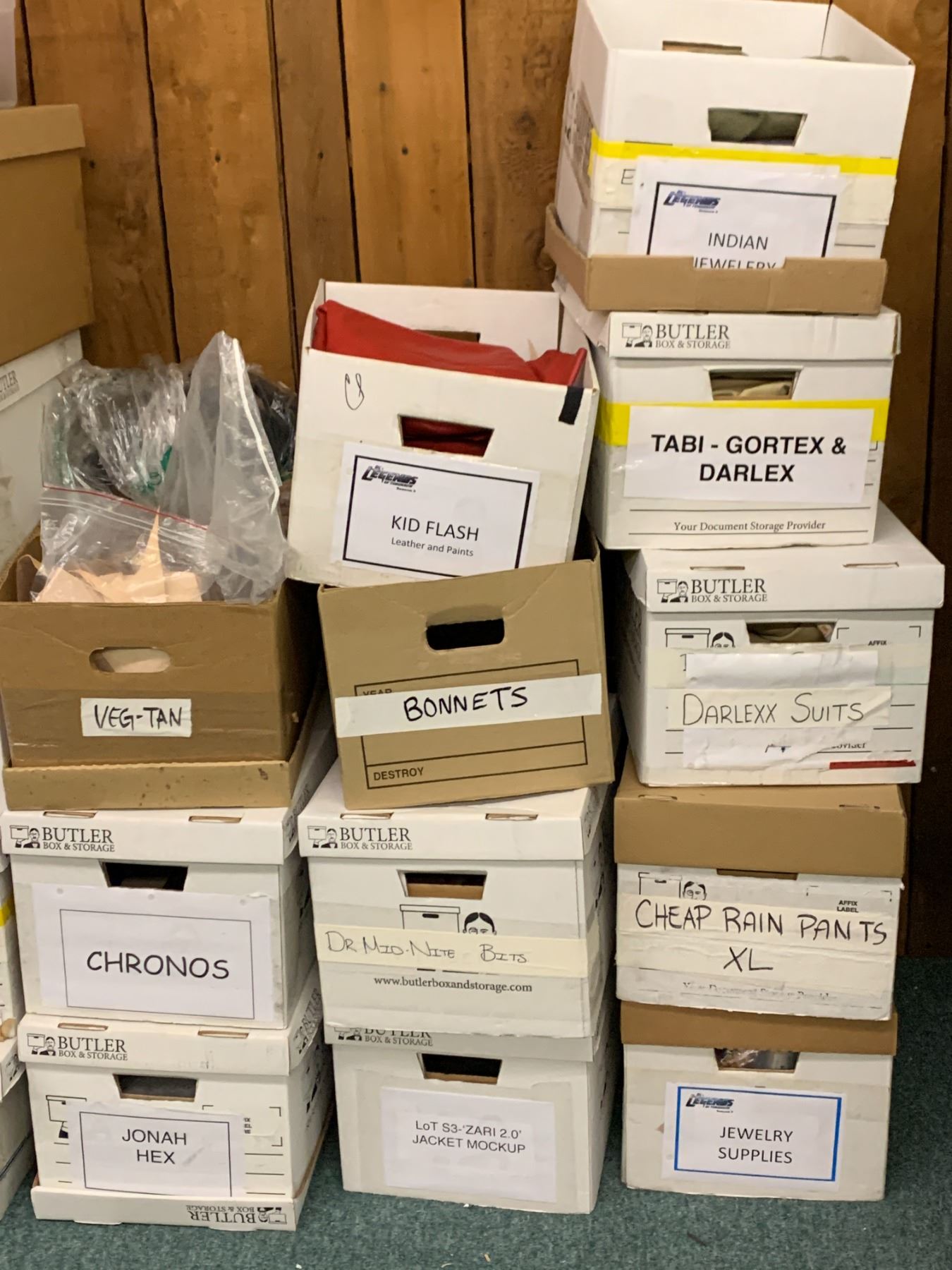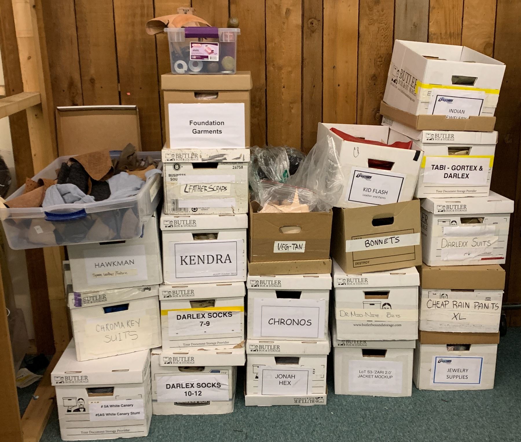 "Superhero Show" large group of Hero costume scraps & prototypes (approx 22 pcs)
