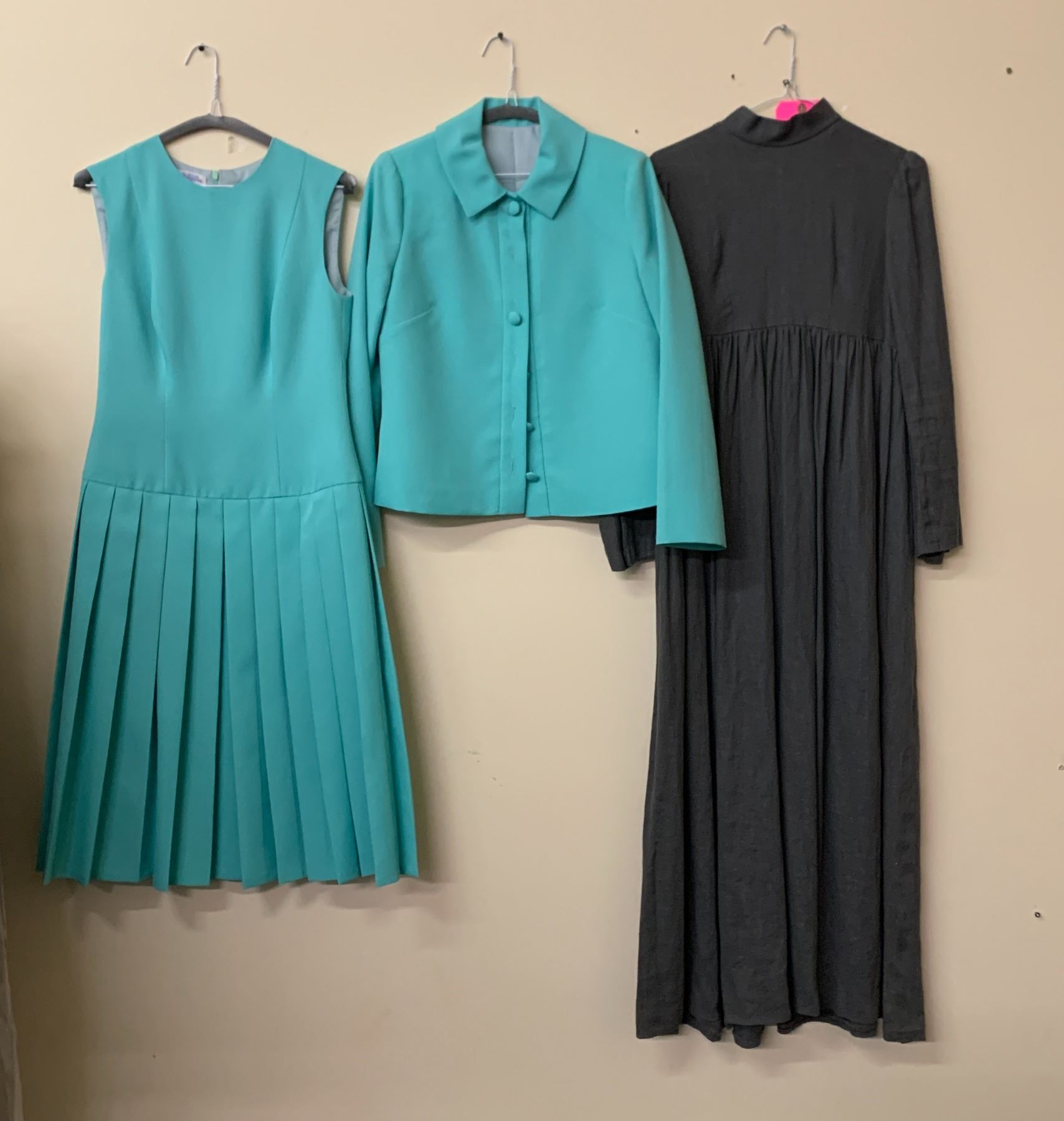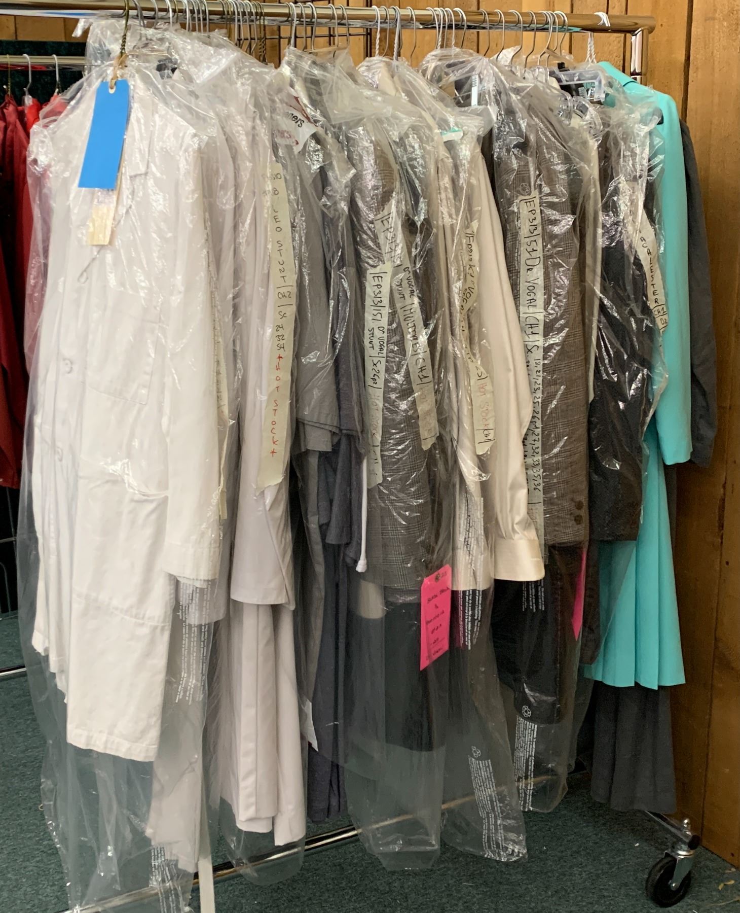 "Superhero Show" rack of assorted screen worn wardrobe - includes full outfits / lab coats / suits / gowns / shirts etc (approx 45 pcs)