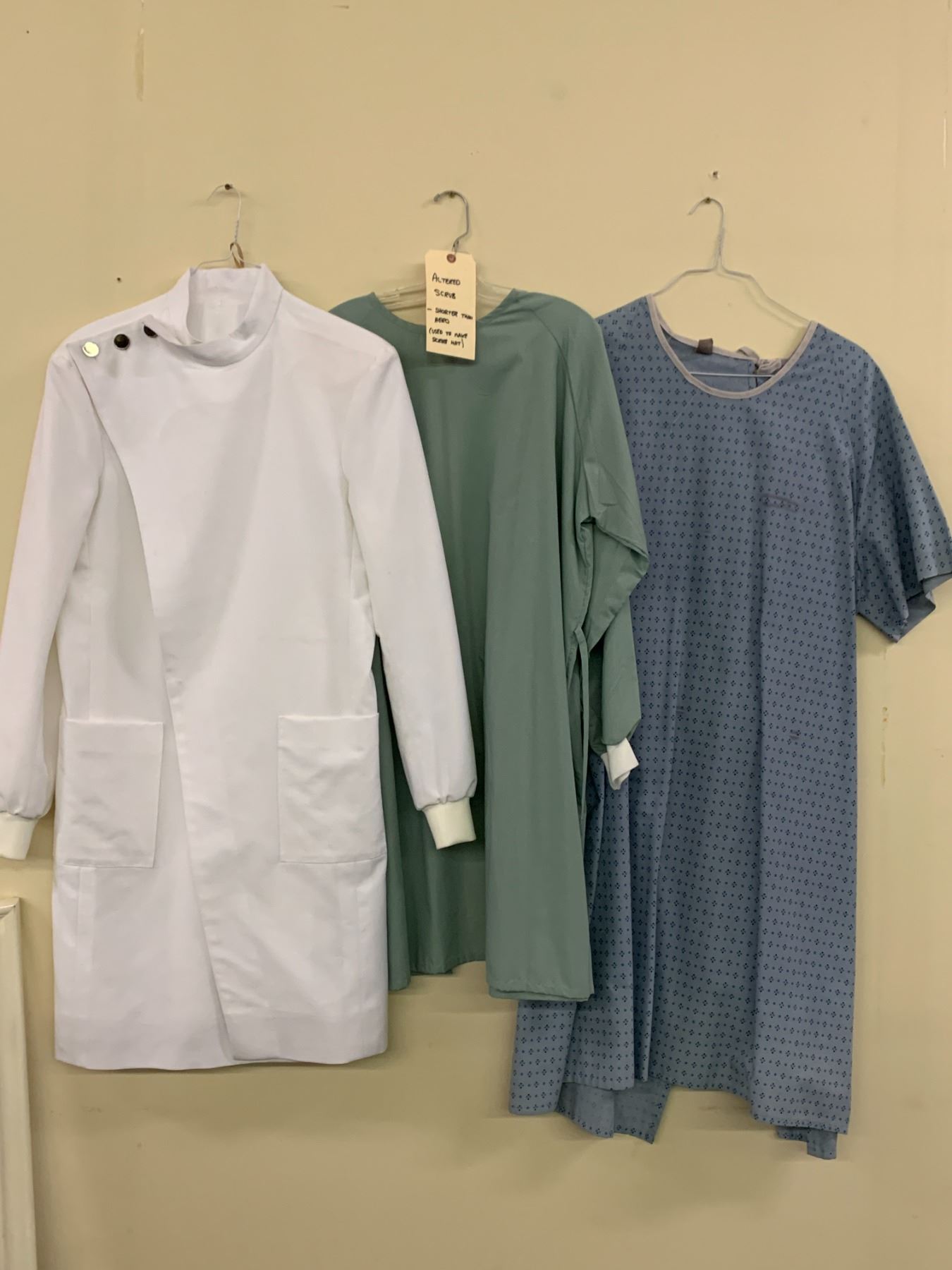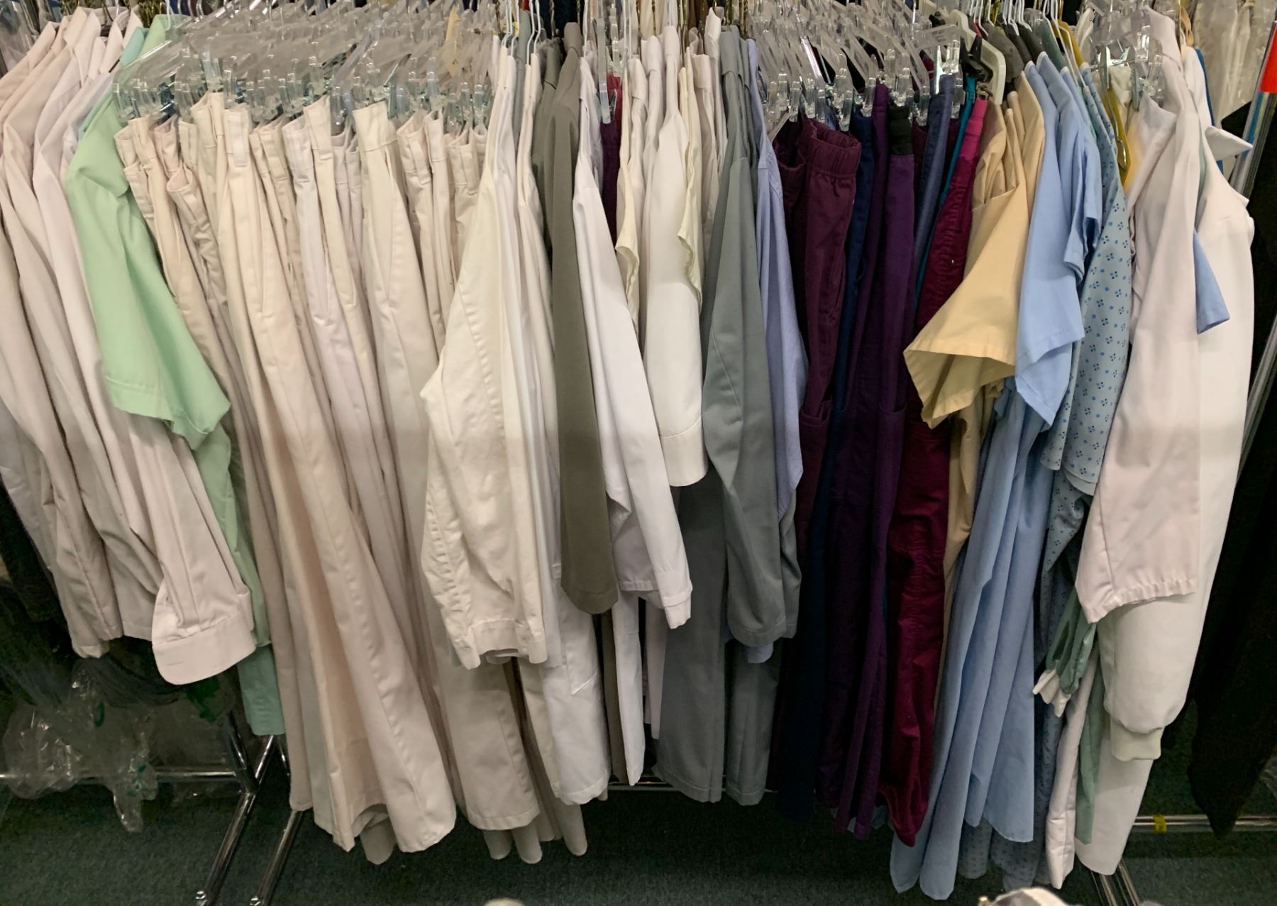 "Superhero Show" rack of assorted screen worn wardrobe - includes mostly scrubs (approx 100 pcs)