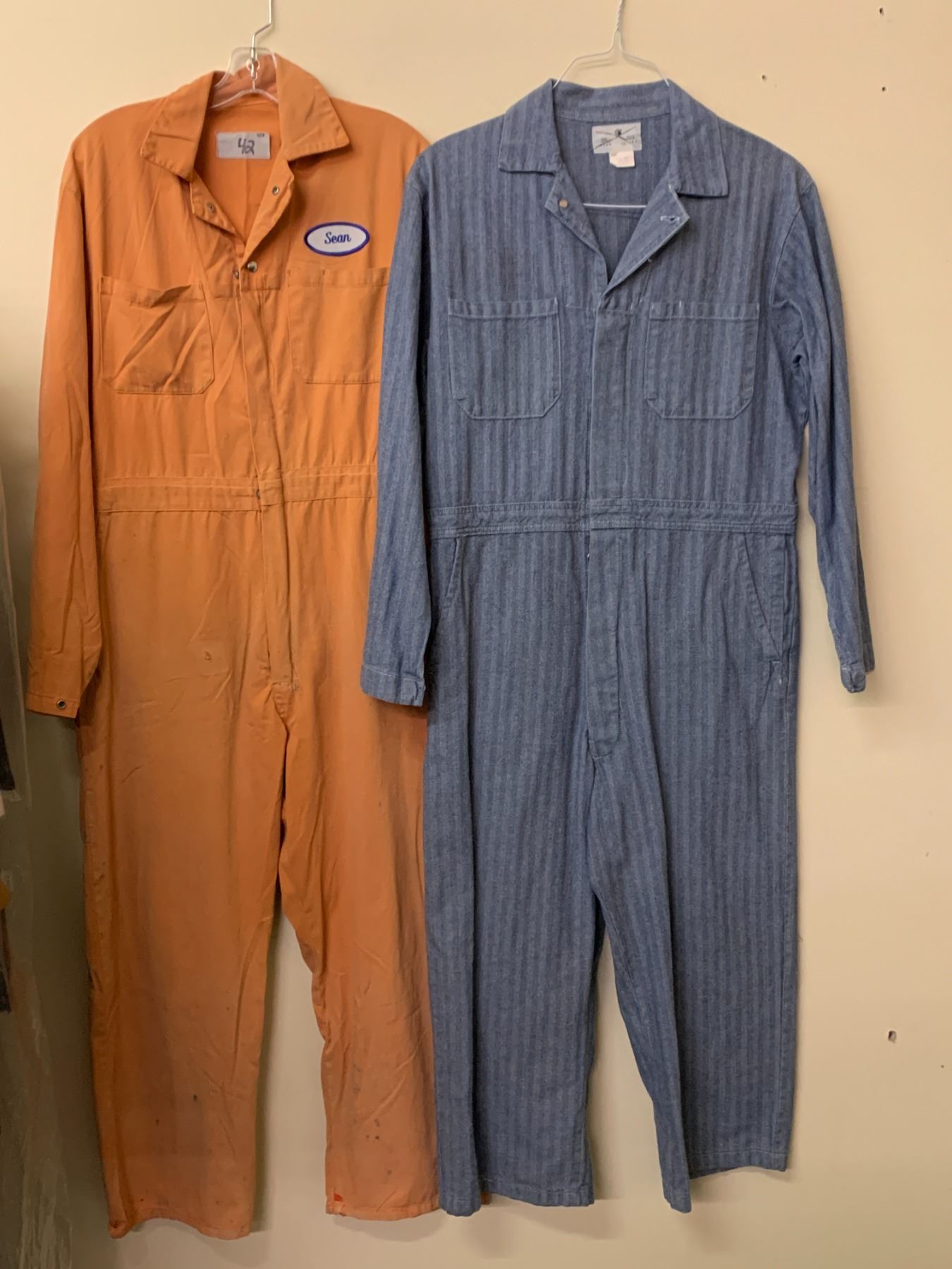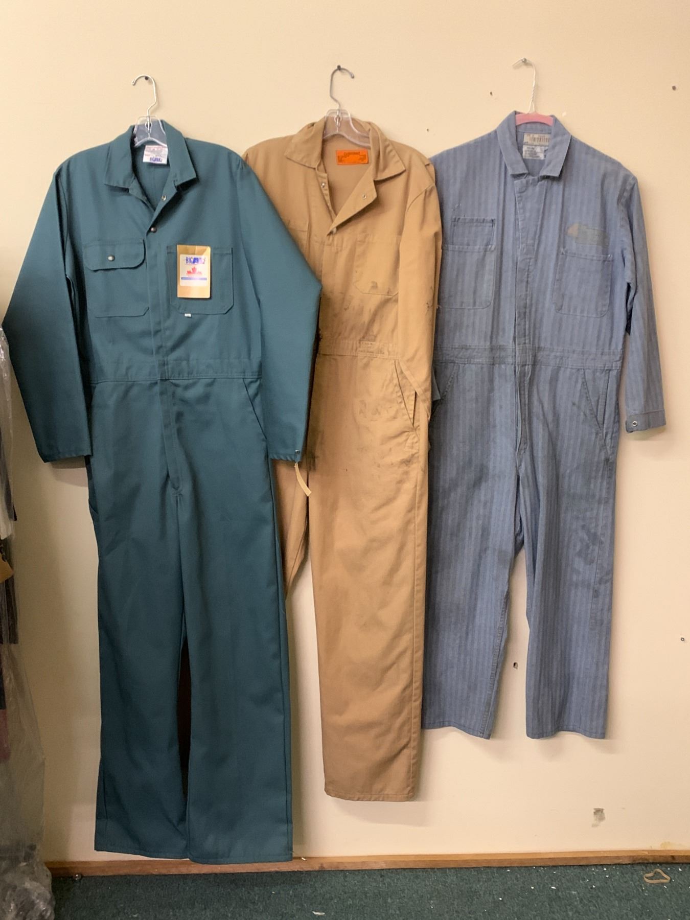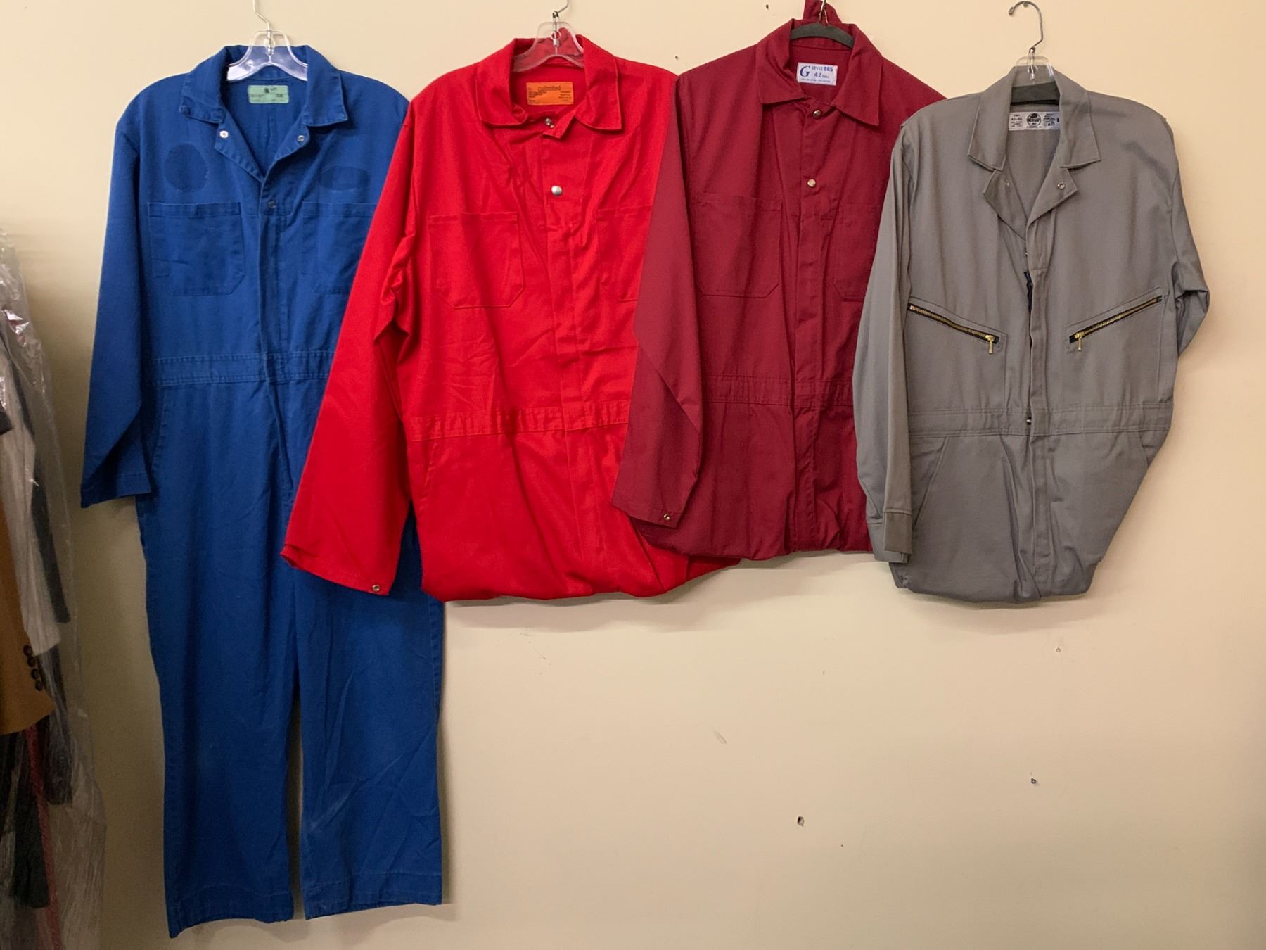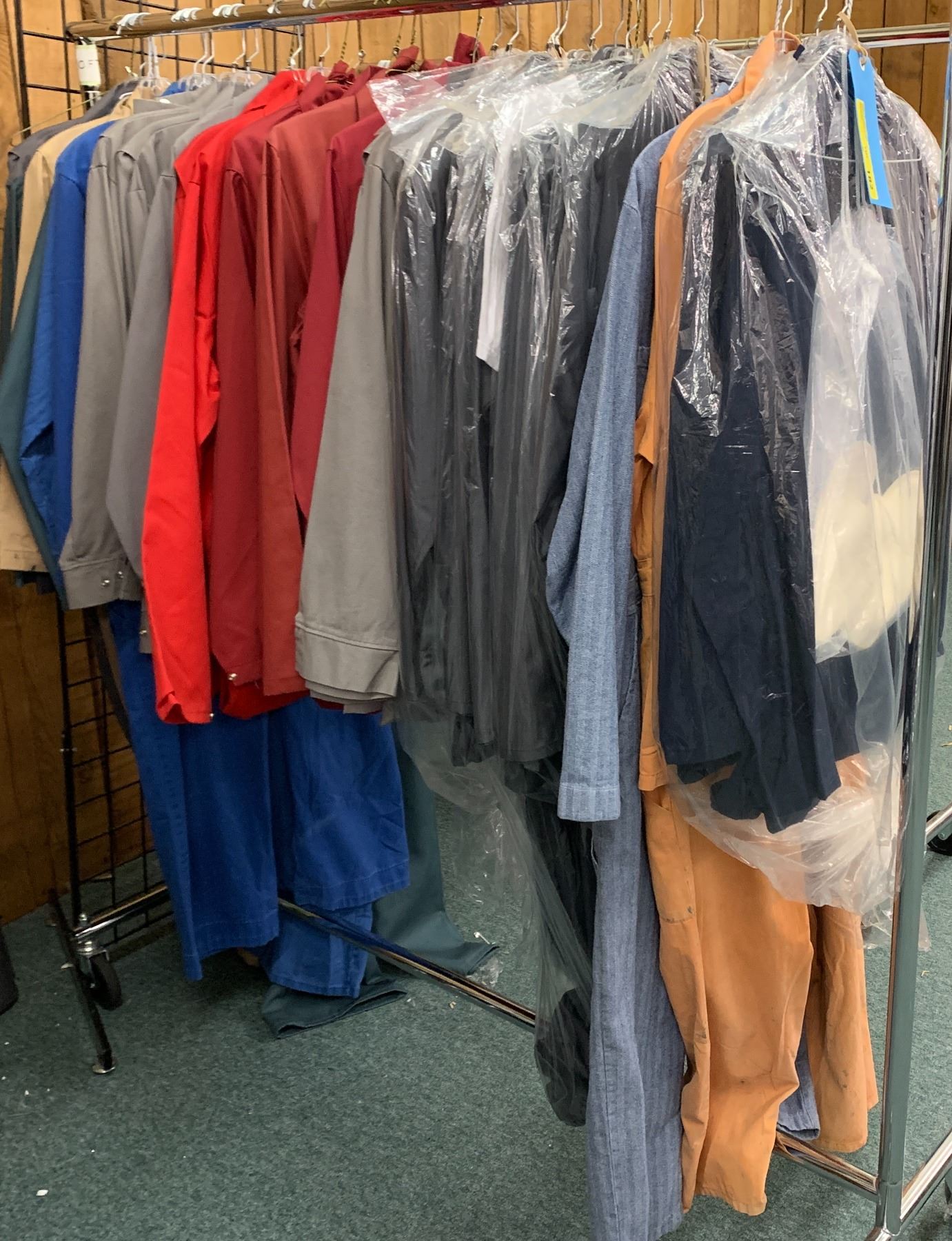 "Superhero Show" rack of assorted screen worn wardrobe - includes full outfits / mostly coveralls etc ( approx 30 pcs)
