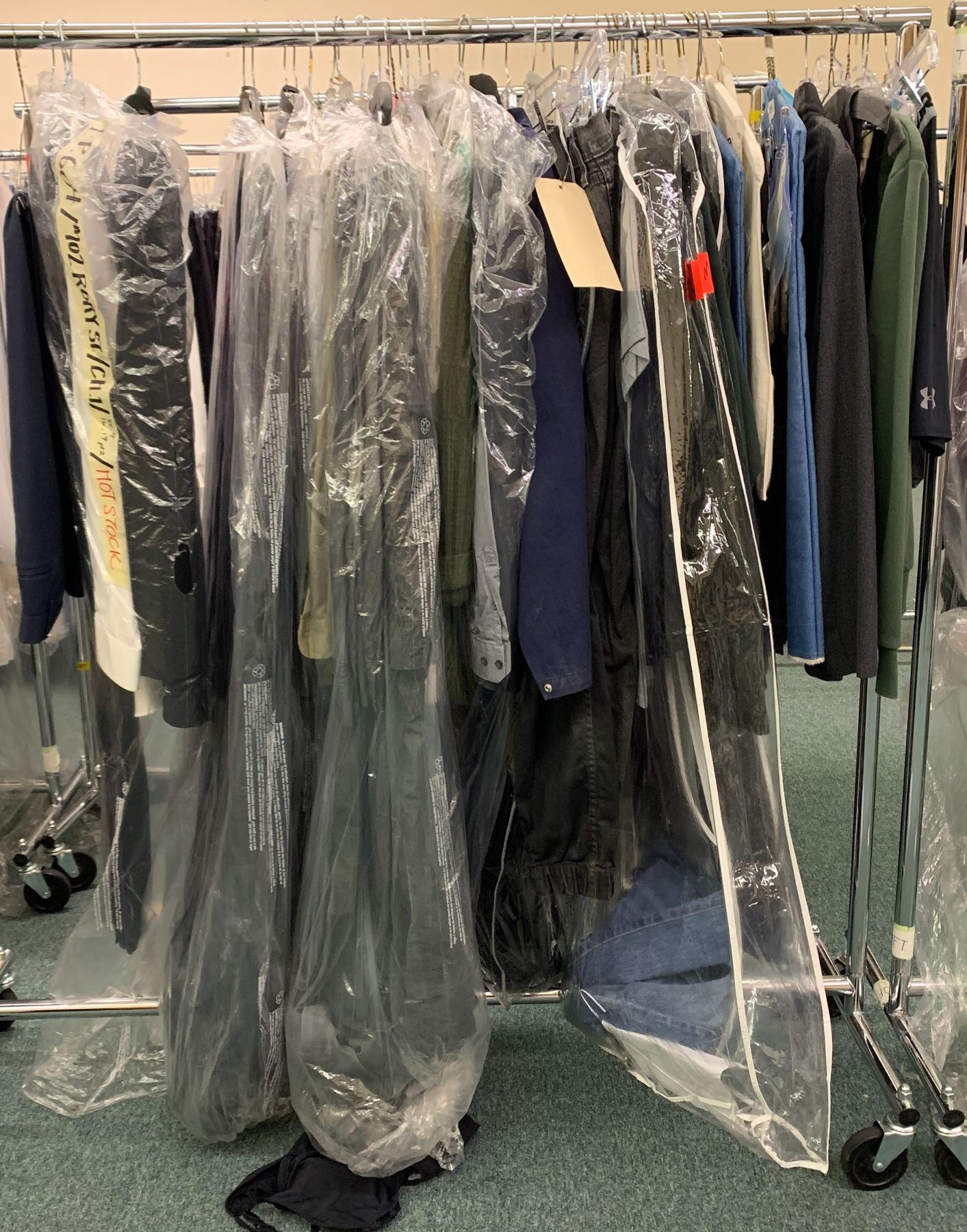 "Superhero Show" rack of assorted screen worn wardrobe - includes full outfits / pants / shirts / blazers / suits / shorts / underwears etc (approx 45 pcs)