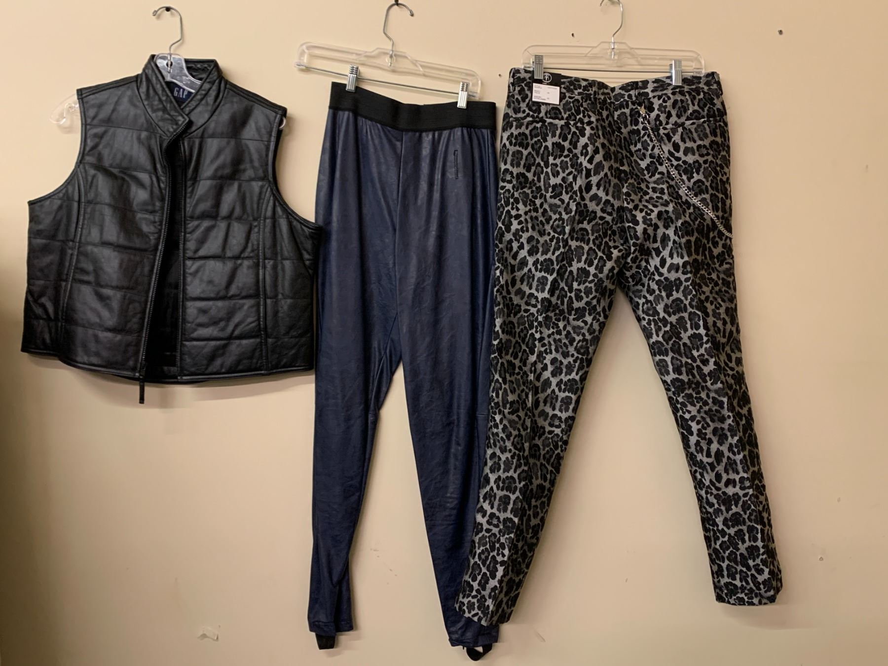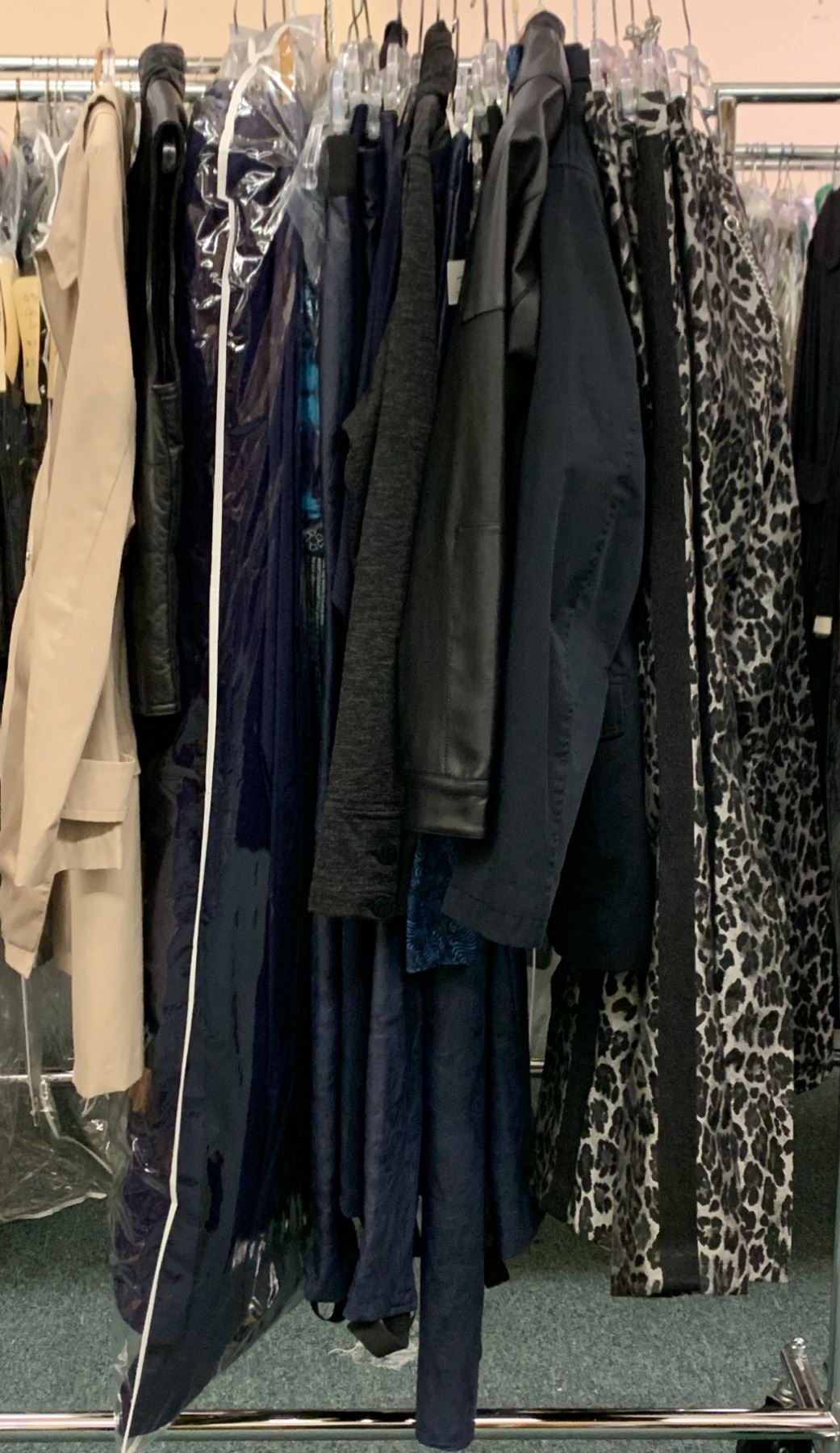 "Superhero Show" rack of assorted screen worn wardrobe - includes jackets / trench coats / leather vests / leather tights / leather jackets etc (approx 25 pcs)