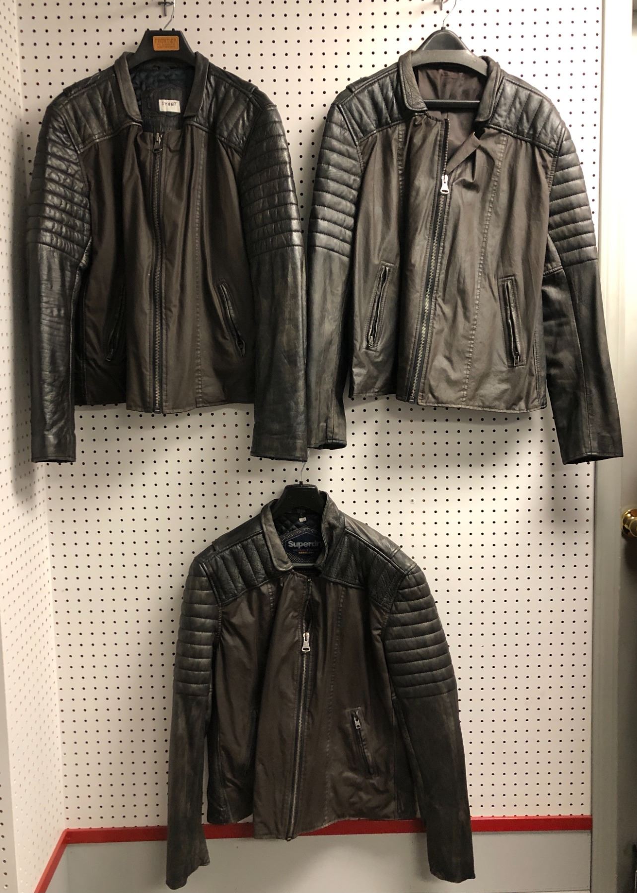 "Superheroes Show" #3 Hero Stunt - Group of 3 men's brown leather jackets (1 labelled stunt, 2 have not labels) *HOT STOCK*