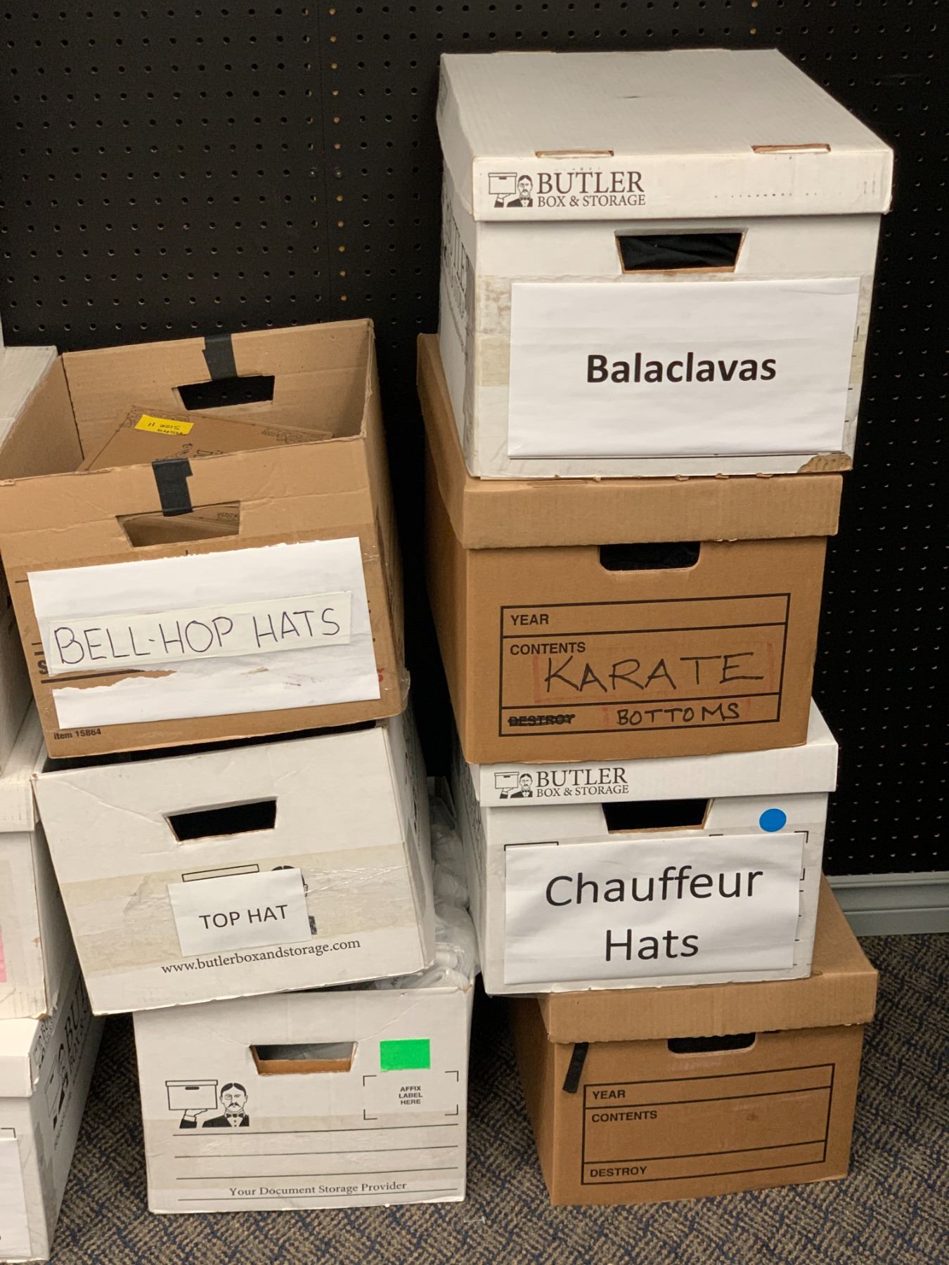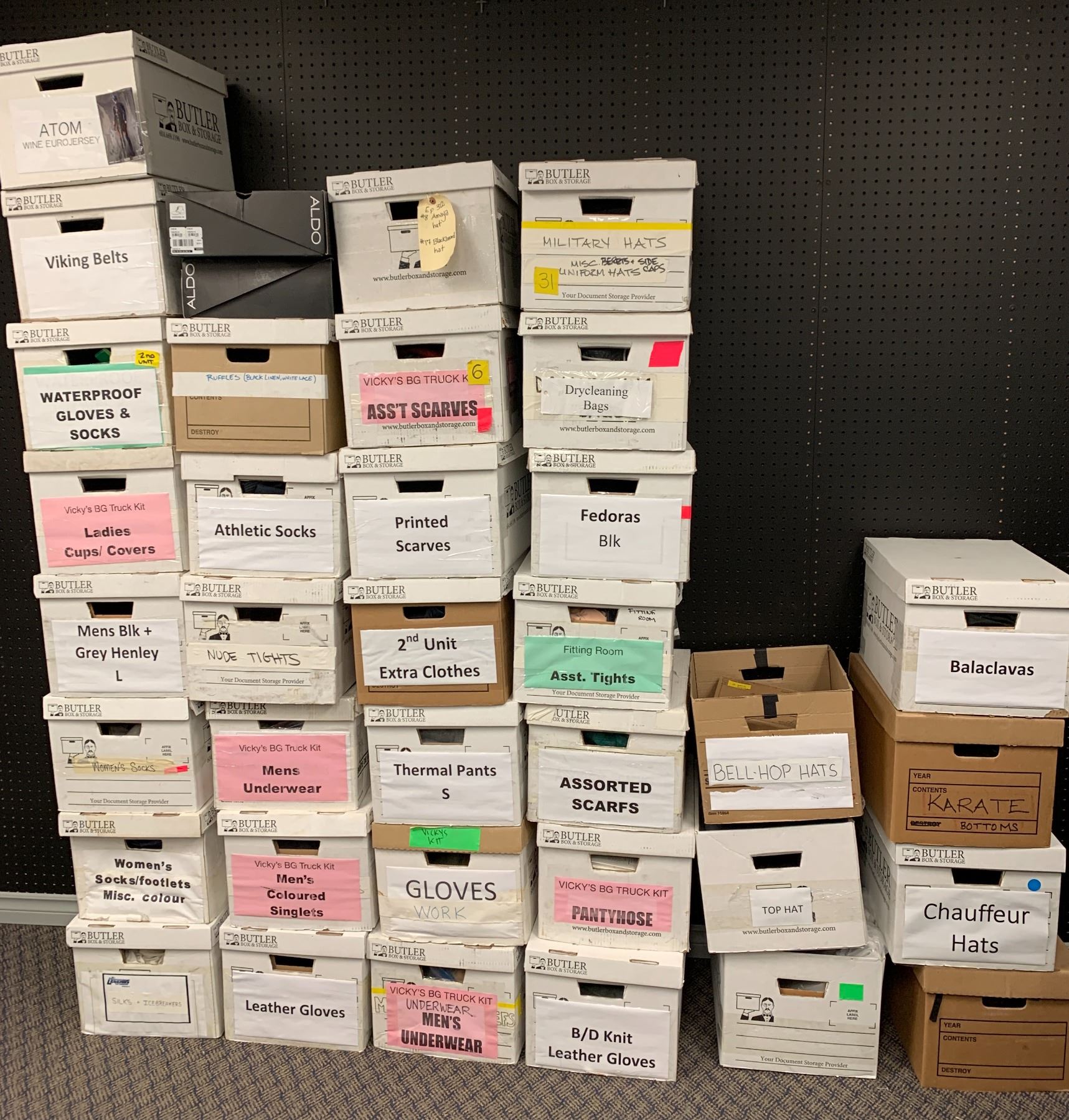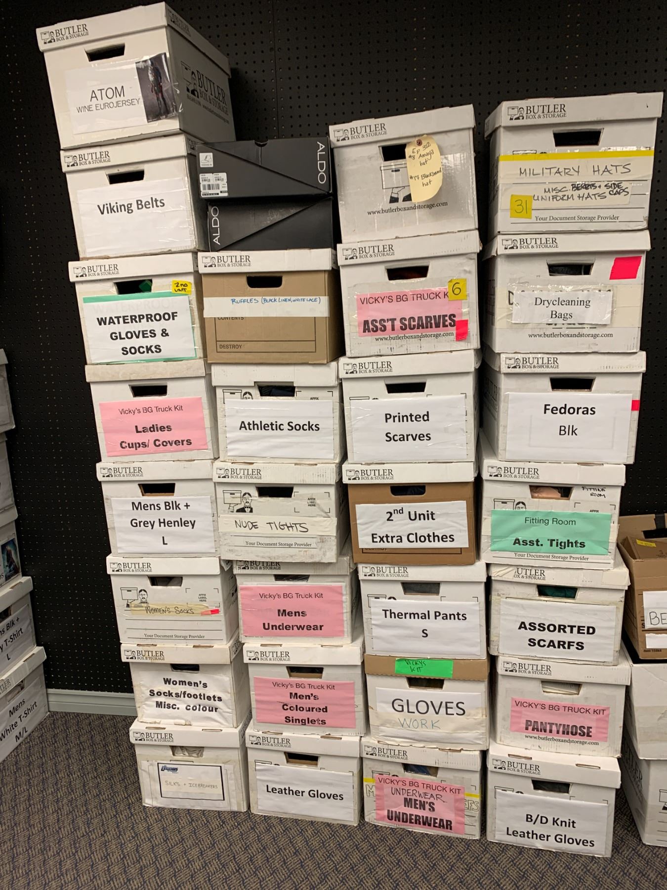"Superheroes Show" - Approx. 35 boxes filled w/ wardrobe accessories including gloves/ belts/ scarves/ lingerie/ hats & much more