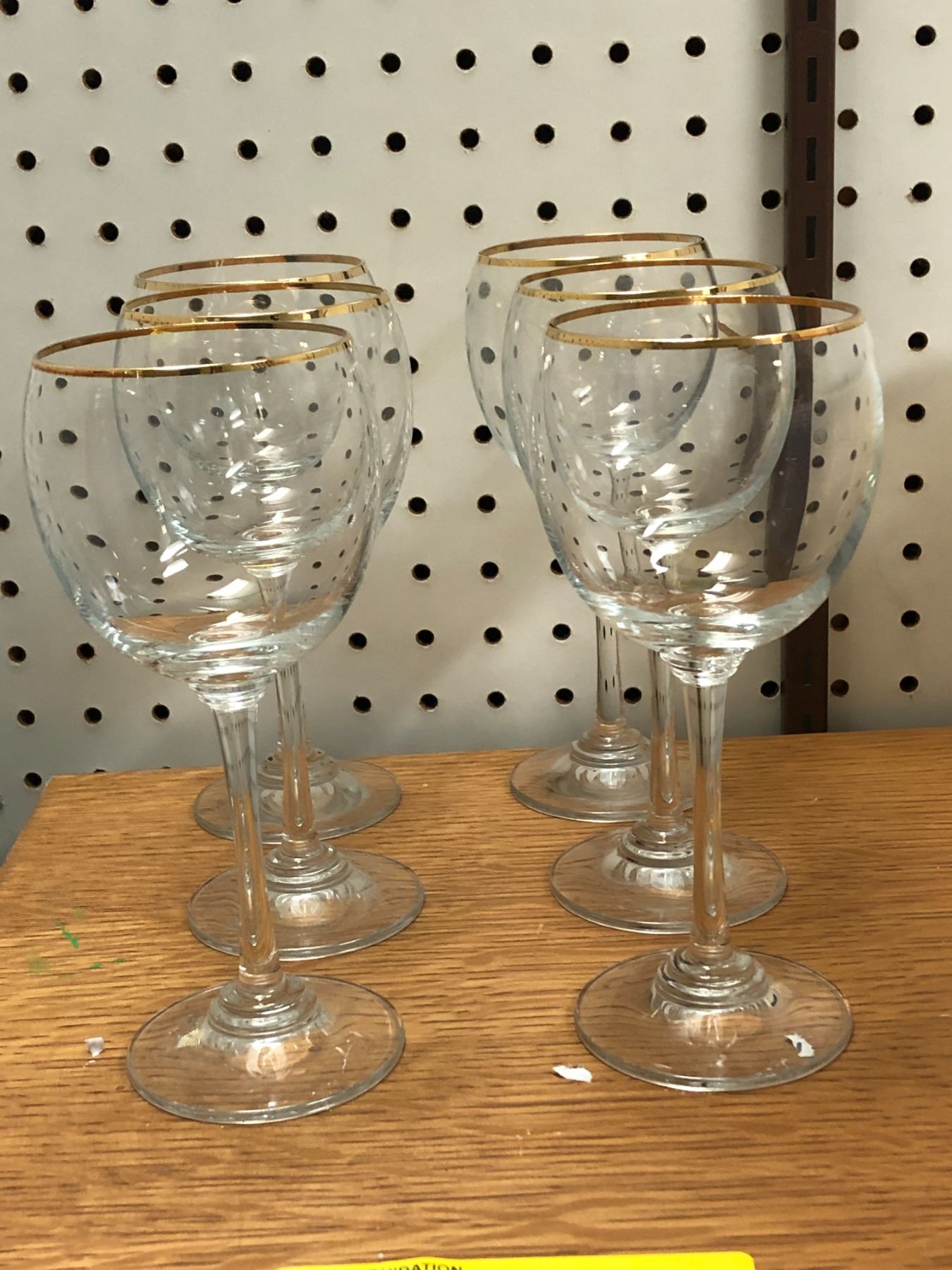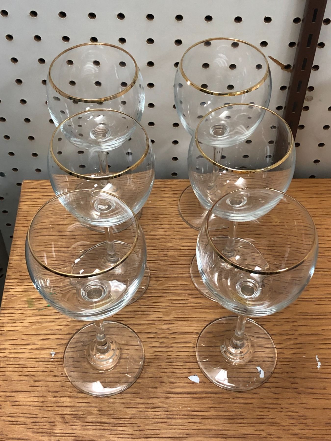 "Superheroes Show" - Group of 6 gold rim wine glasses