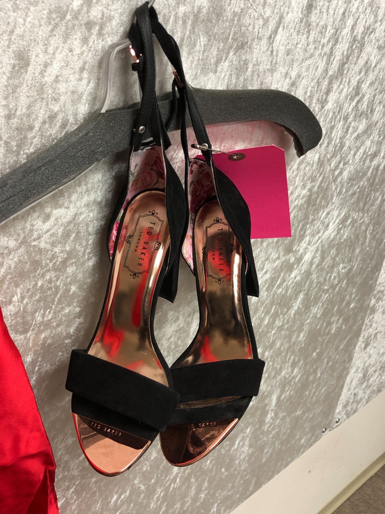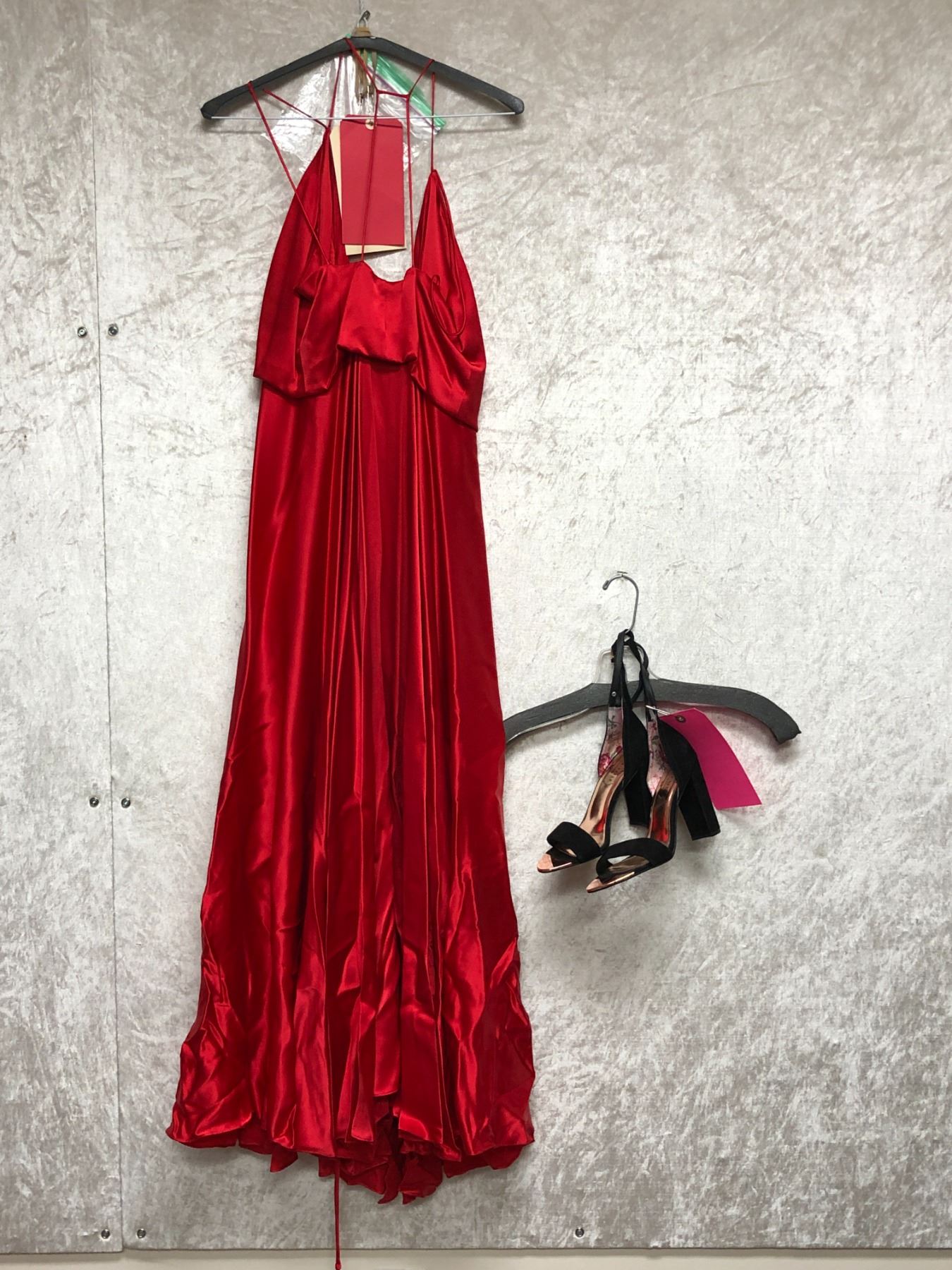 "Superheroes Show" Season 4 EP 9 #1 Hero formal outfit - includes red dress/ golden bracelet & pair of Ted Baker black & golden heels