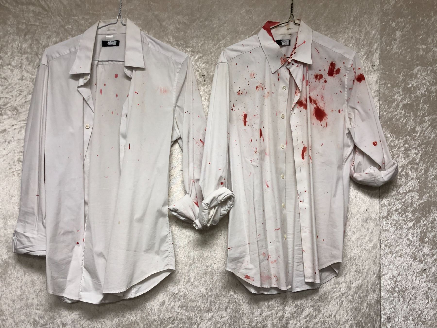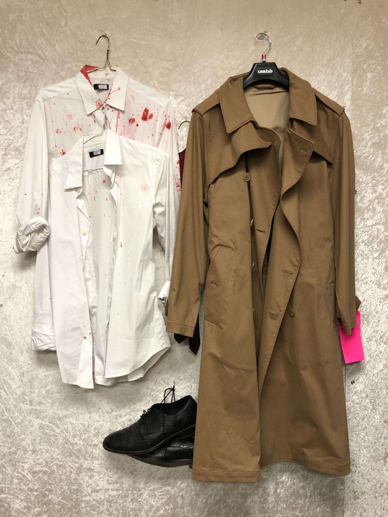 "Superheroes Show" Season 5 EP 5 #8 Hero bloody outfit - includes 2 shirts/ long coat/ maroon tie & black shoes (shoes are for stunt)