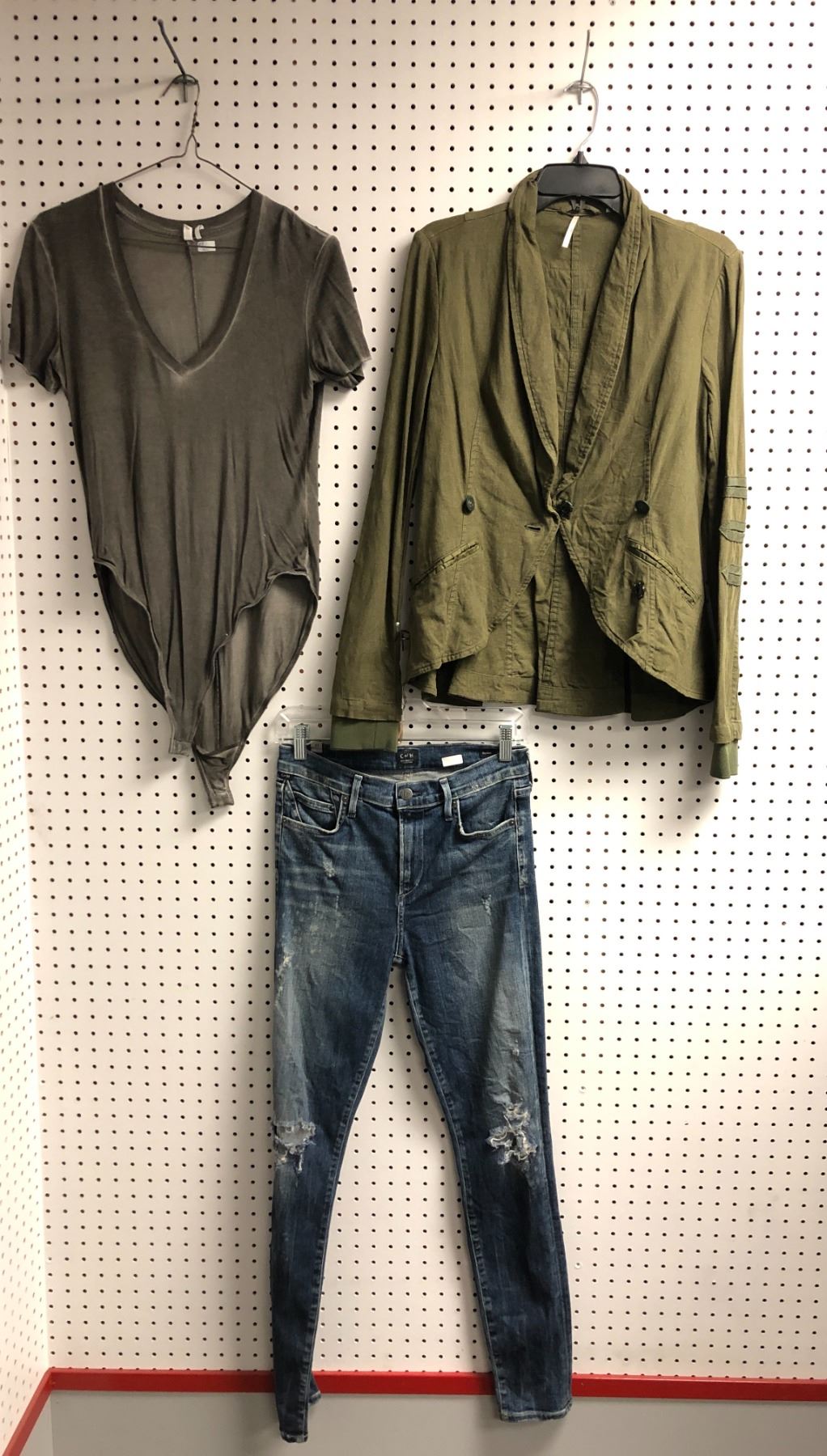 "Superheroes Show" Season 5 EP 509 #6 Hero outfit - Green double-breasted woven jacket/ grey v neck & distressed blue jeans w/ rips at knees *HOT STOCK*