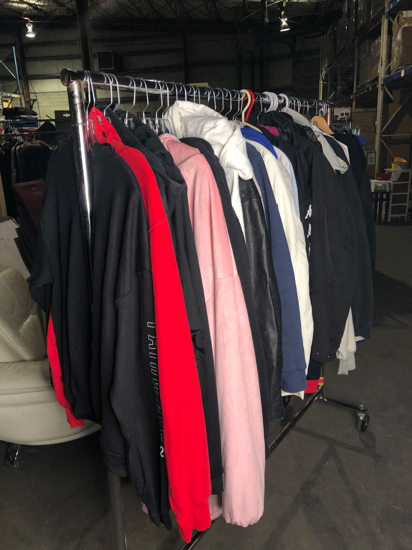 "Supernatural" - Rack full of assorted set dec wardrobe includes winter jackets/ hoodies (approx. 40 pcs) rack included