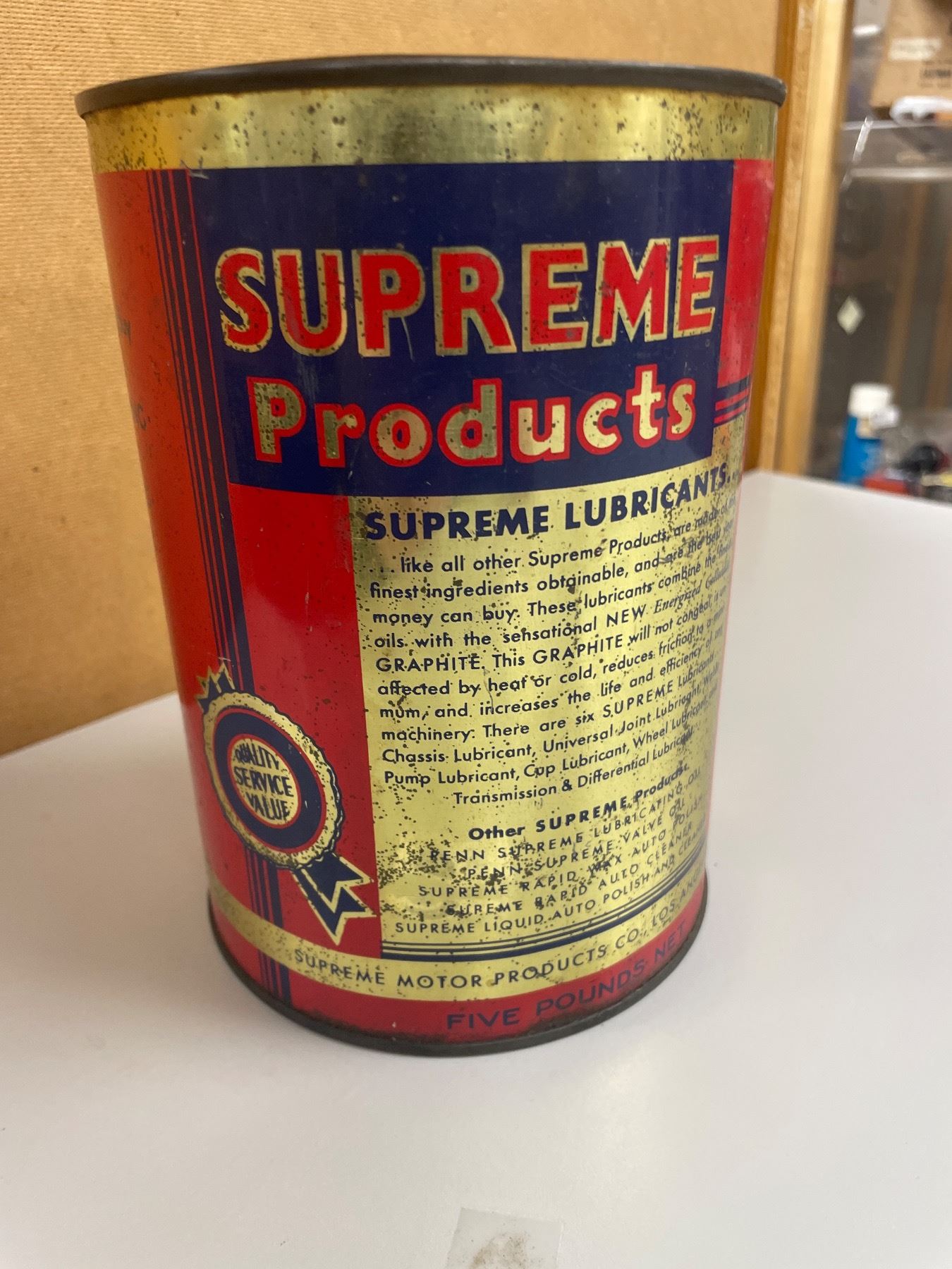 Supreme Lubricant Tin. 5 Lbs Net.
