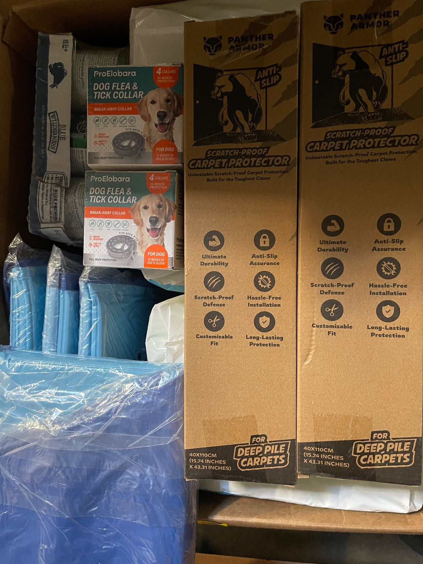 Surprise Bin of New Amazon Goods - Dog Flea & Tick Collar, Maximum Dog Grip, Carpet Protector, Etc.