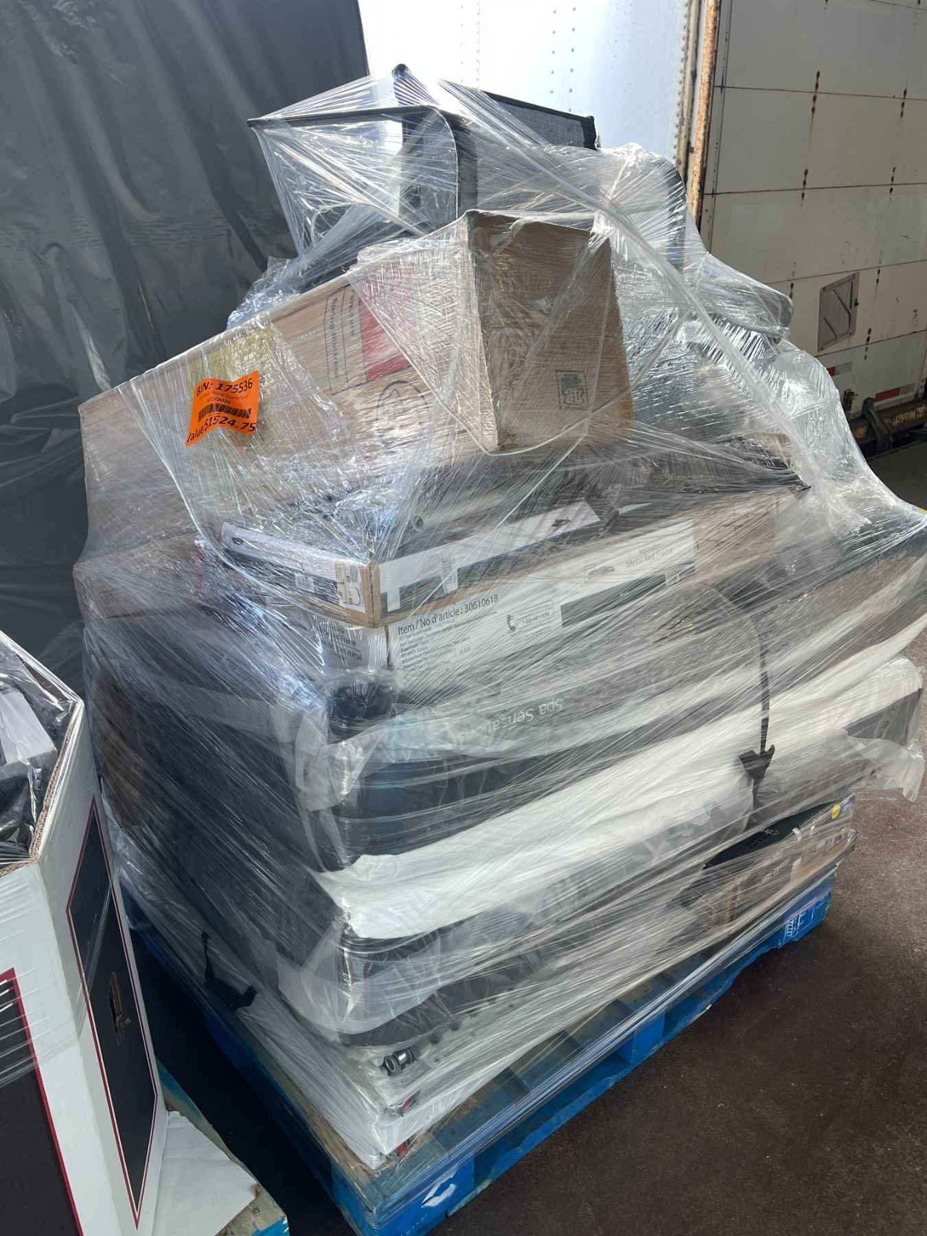 Surprise Pallet of Misc - Blow Up Mattress, Chairs, Metal Bed Frame, Closet Organizer, Coffee Table, Inflatable Mattress, Etc. (Approx. Retail $1524.75)