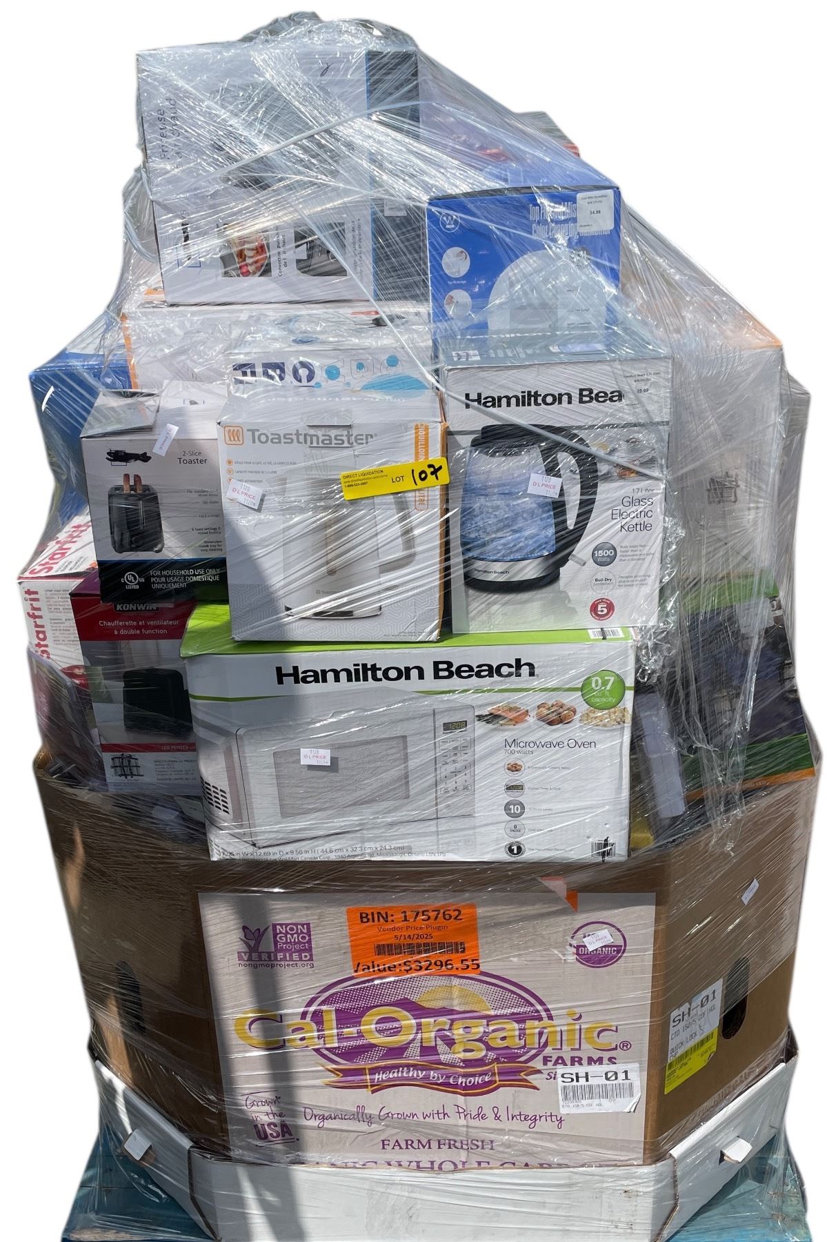 Surprise Pallet of Misc Kitchen Appliances - Hamilton Beach Microwave and Electric Kettle, Toastmaster Toaster, Starfrit Wok, Konwin Coffee Maker (Approx. Retail Value: $3296.55)