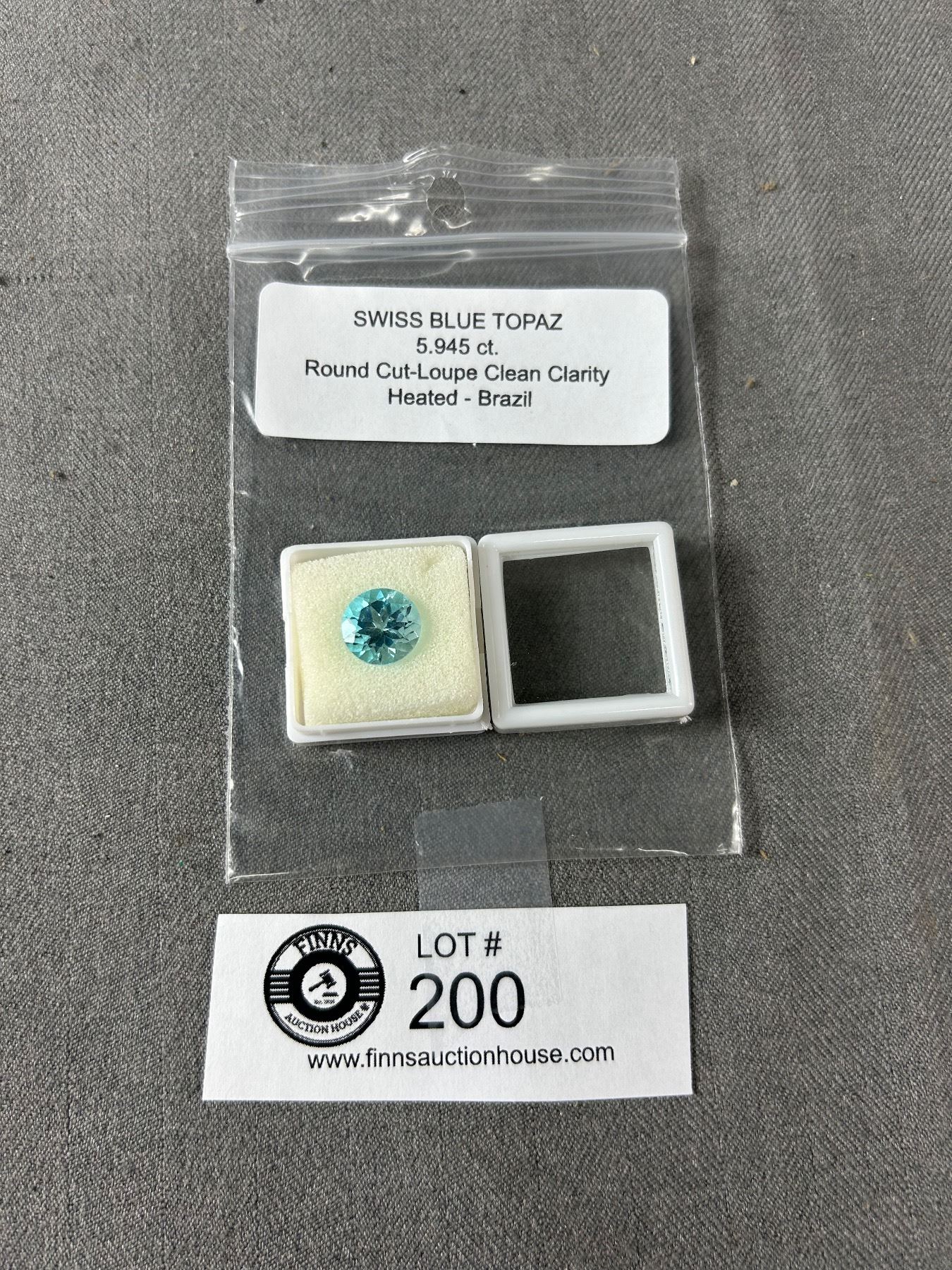 Swiss Blue Topaz. 5.945ct. Round Cut-Loupe Clean Clarity- Heated. Brazil