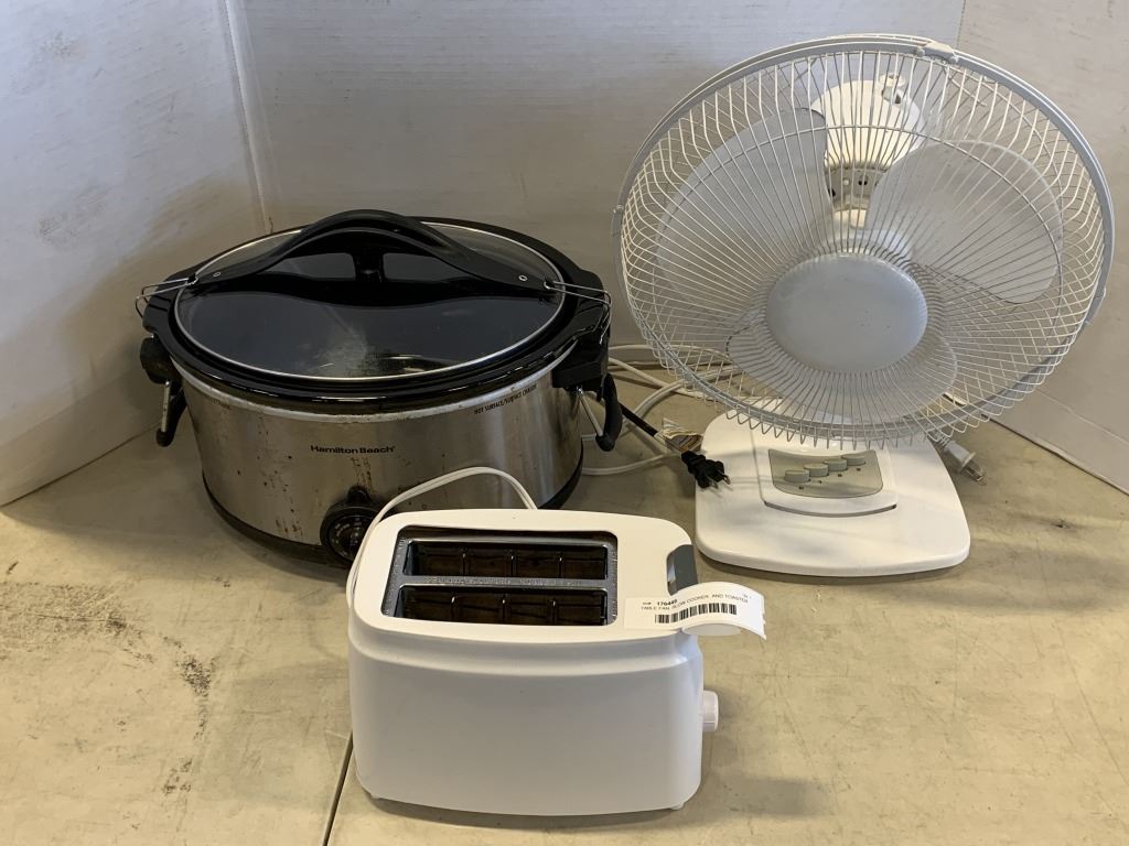 TABLE FAN, SLOW COOKER, AND TOASTER