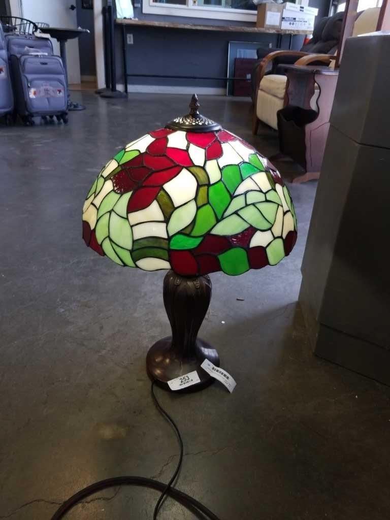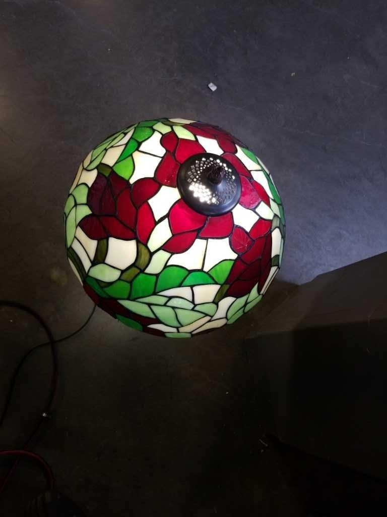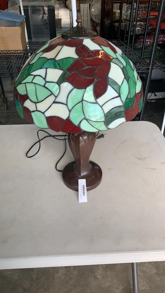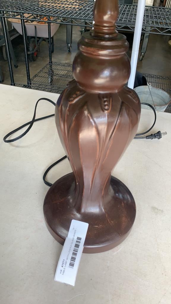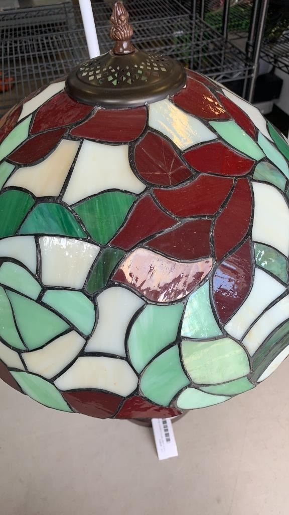 TABLE LAMP WITH LEADED GLASS SHADE - 23 INCHES TALL