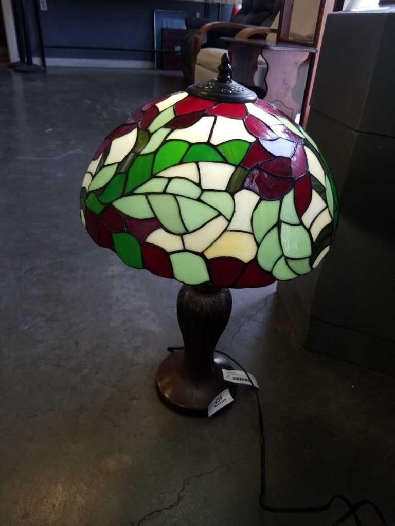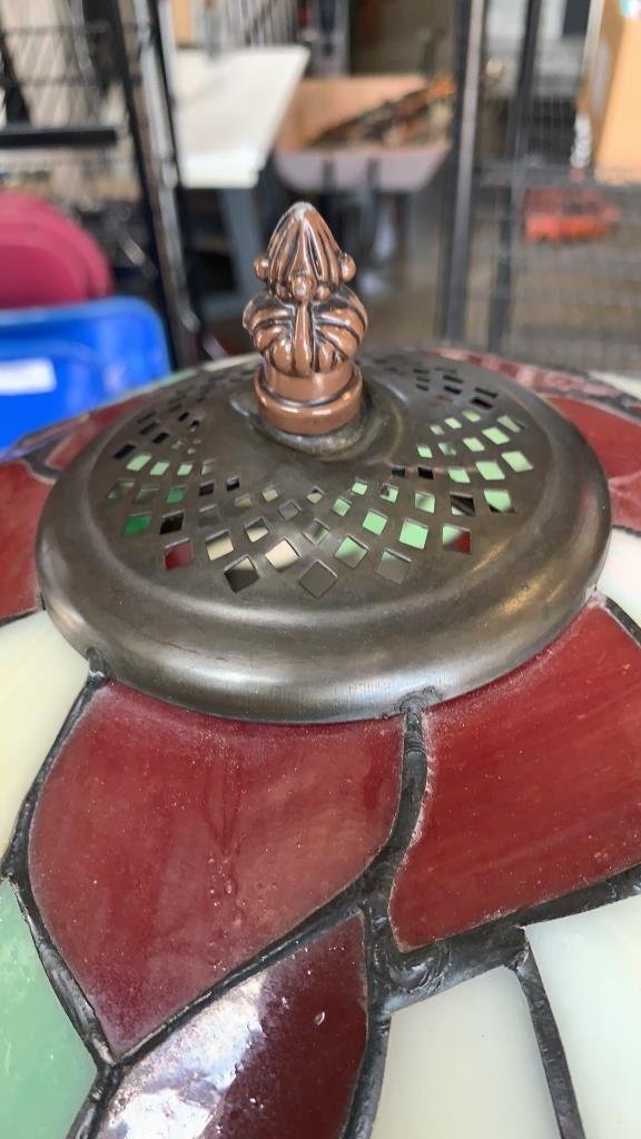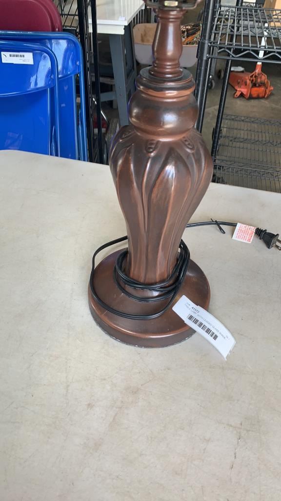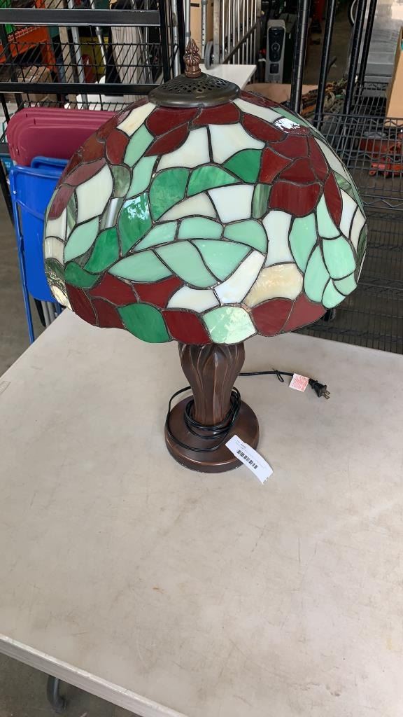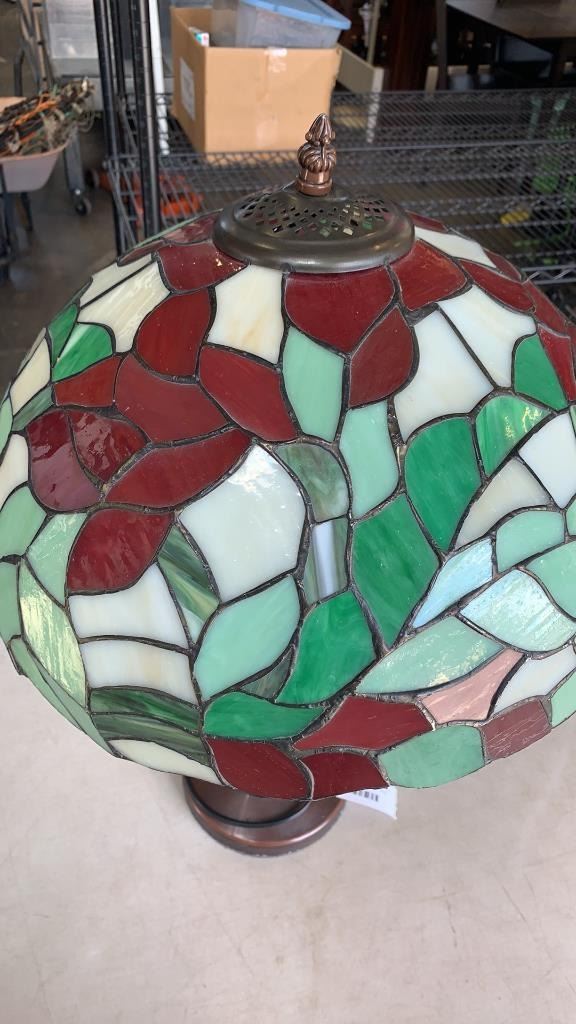 TABLE LAMP WITH LEADED GLASS SHADE - 25 INCHES TALL