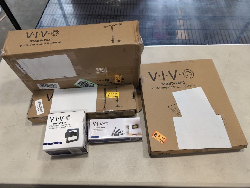 TABLE TOP TV STAND, DUAL MONITOR EXTRA TALL DESK MOUNT AND ACCESSORIES