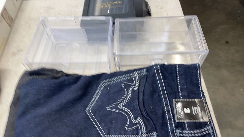 TABLET SLEEVES, NEW PUZZLE, MICROPHONE, 2 PAIRS OF JEANS SIZE 3 AND SIZE 34