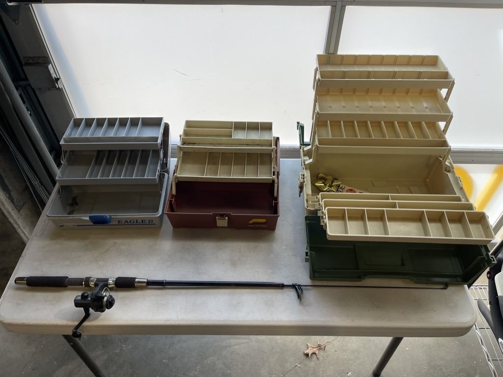 TACKLE BOXES WITH CONTENTS AND FISHING ROD