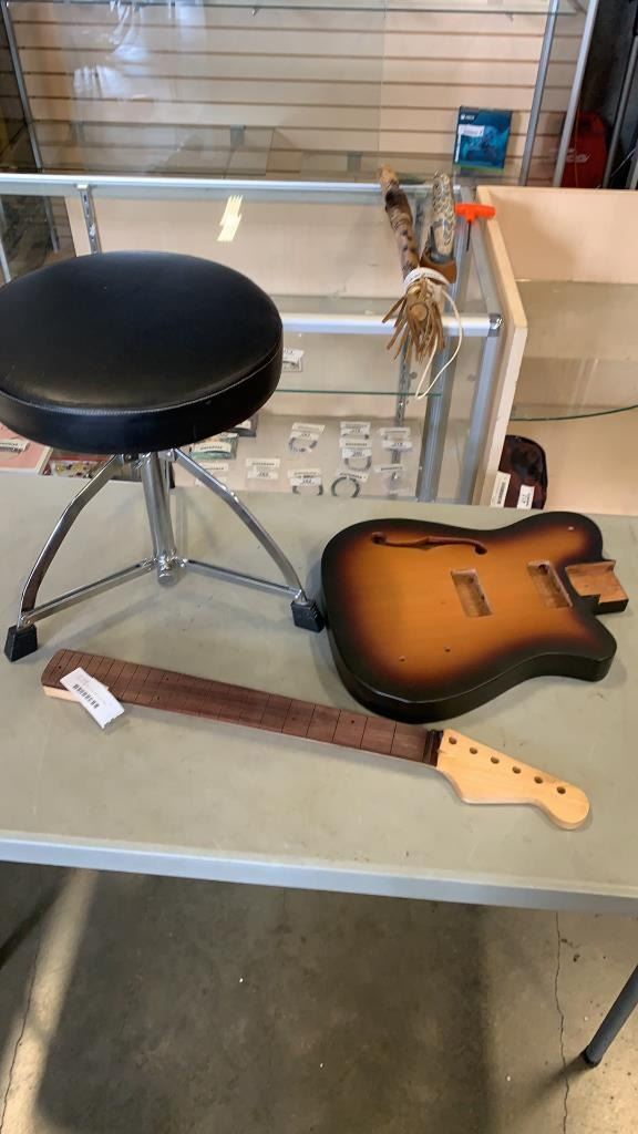 TAMA DRUMMERS STOOL AND ELECTRIC GUITAR BODY AND NECK