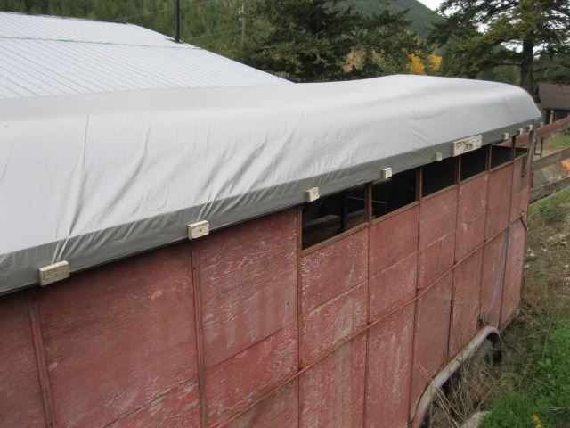 TANDEM AXLE 18' TRAILER WITH TARPED TOP, PLYWOOD SIDES, MORE A STORAGE TRAILER