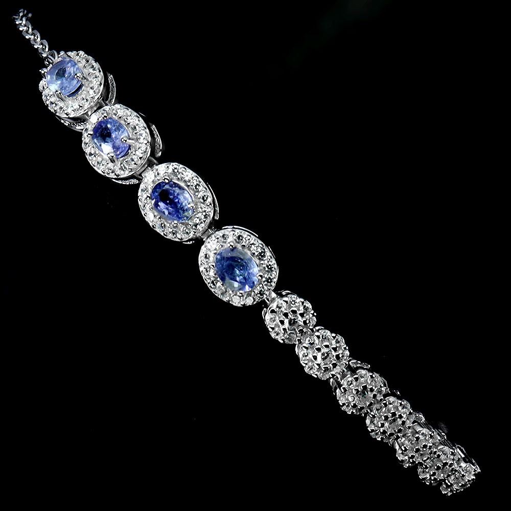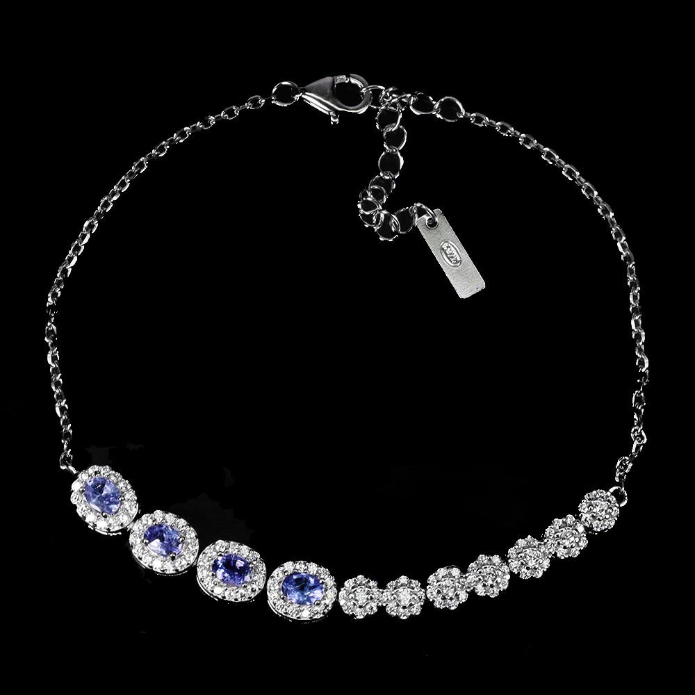 TANZANITE BRACELET IN 14K WHITE PLATED GOLD OVER 925 STERLING SILVER - 7.5 INCHES LONG - APPRAISED REPLACEMENT VALUE